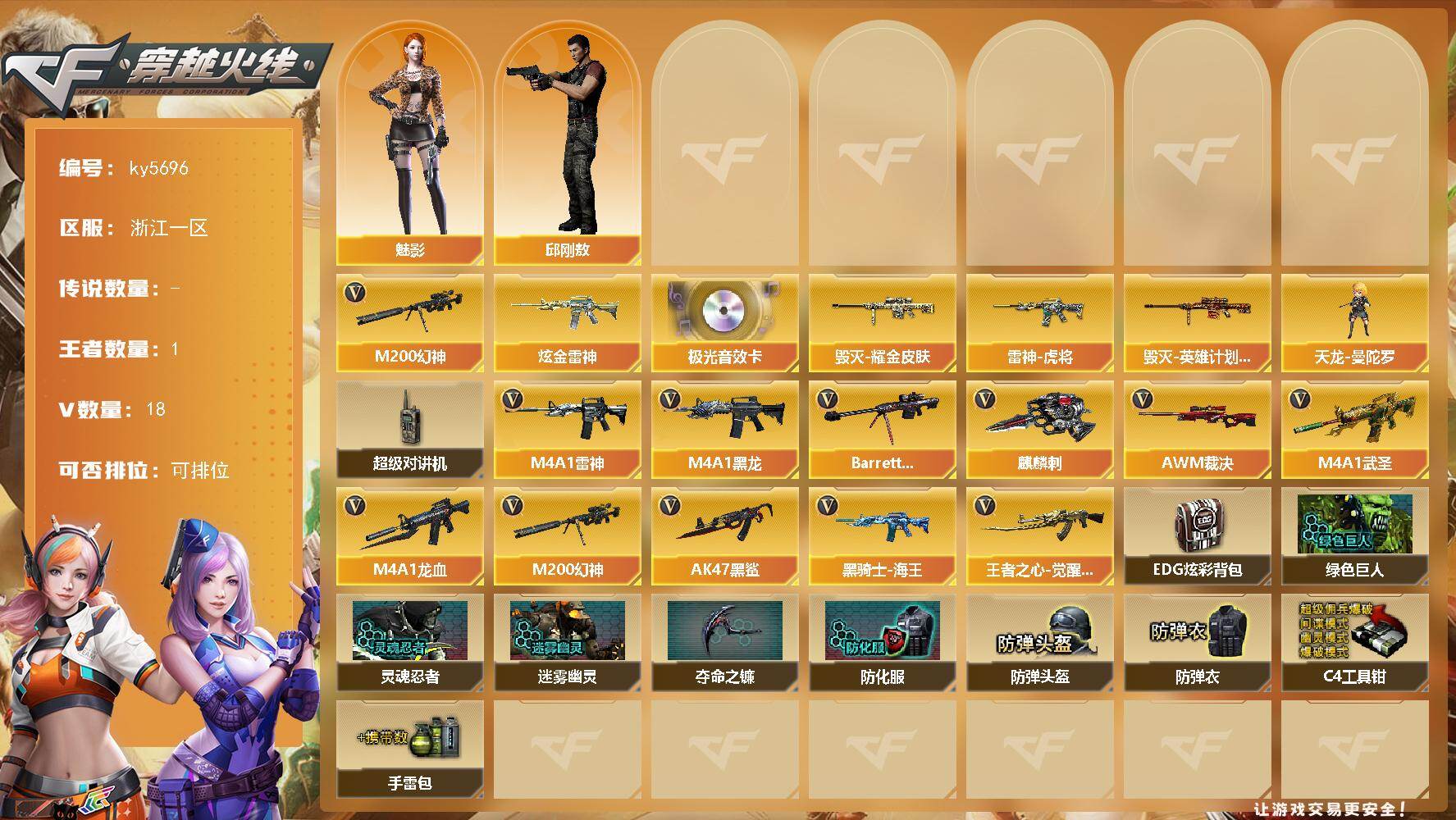 浙江一区-20V-1王者武器数-1炫金武器数【热门武器】:M200-幻神【