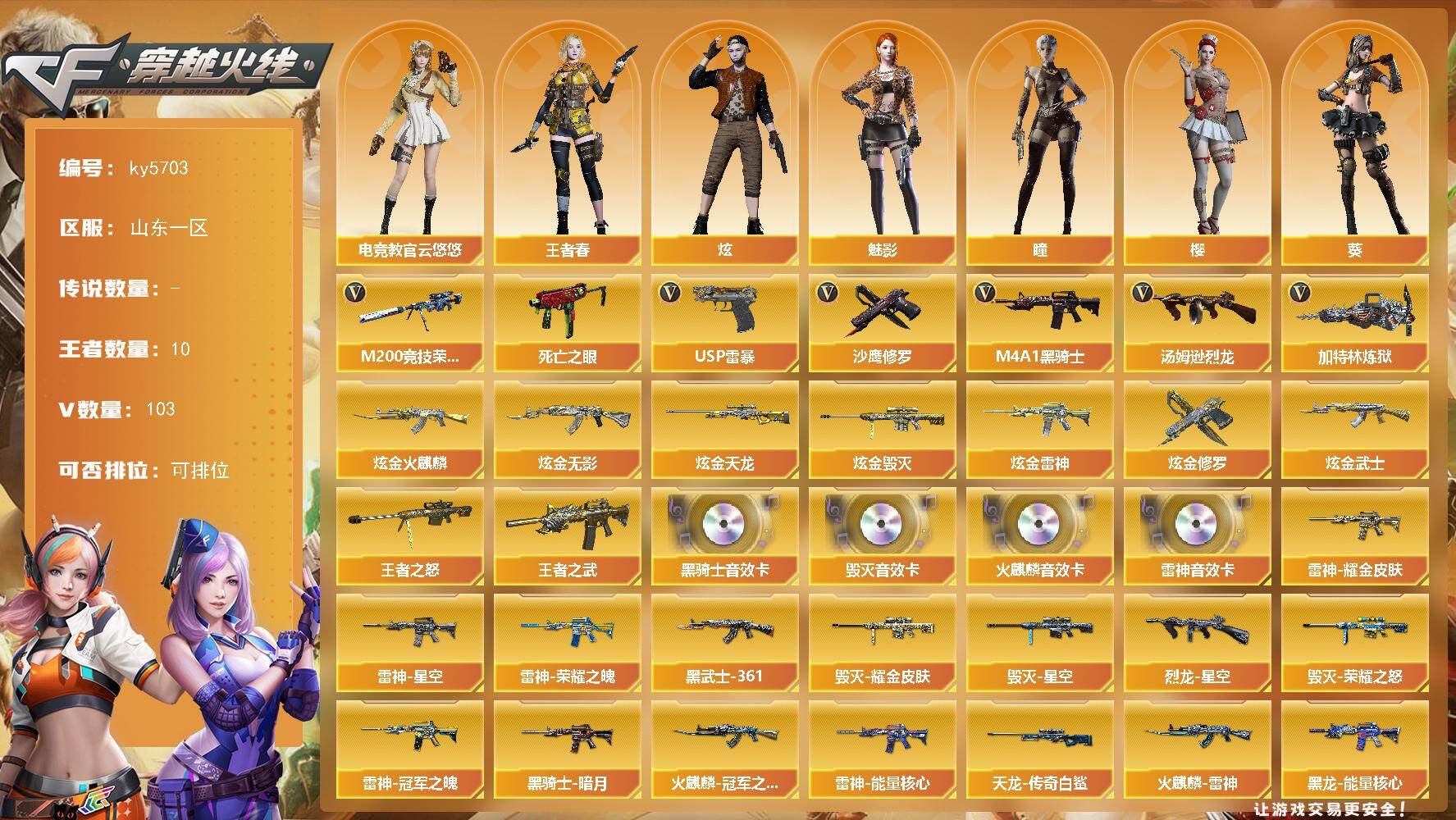 山东一区-111V-10王者武器数-7炫金武器数【热门武器】:M200-竞技