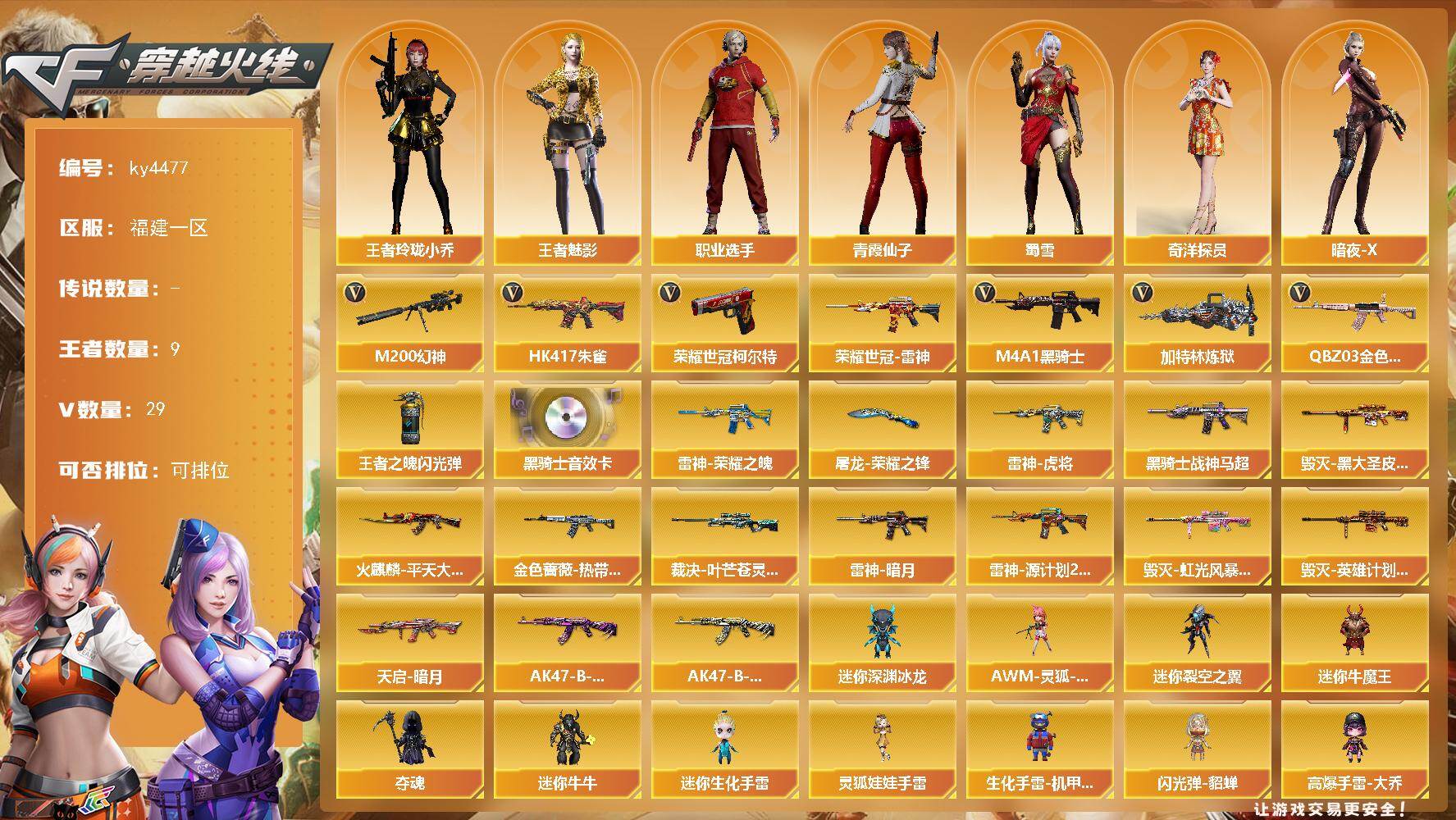 福建一区-29V-9王者-0炫金【热门武器】:QBZ03-金色蔷薇,HK41