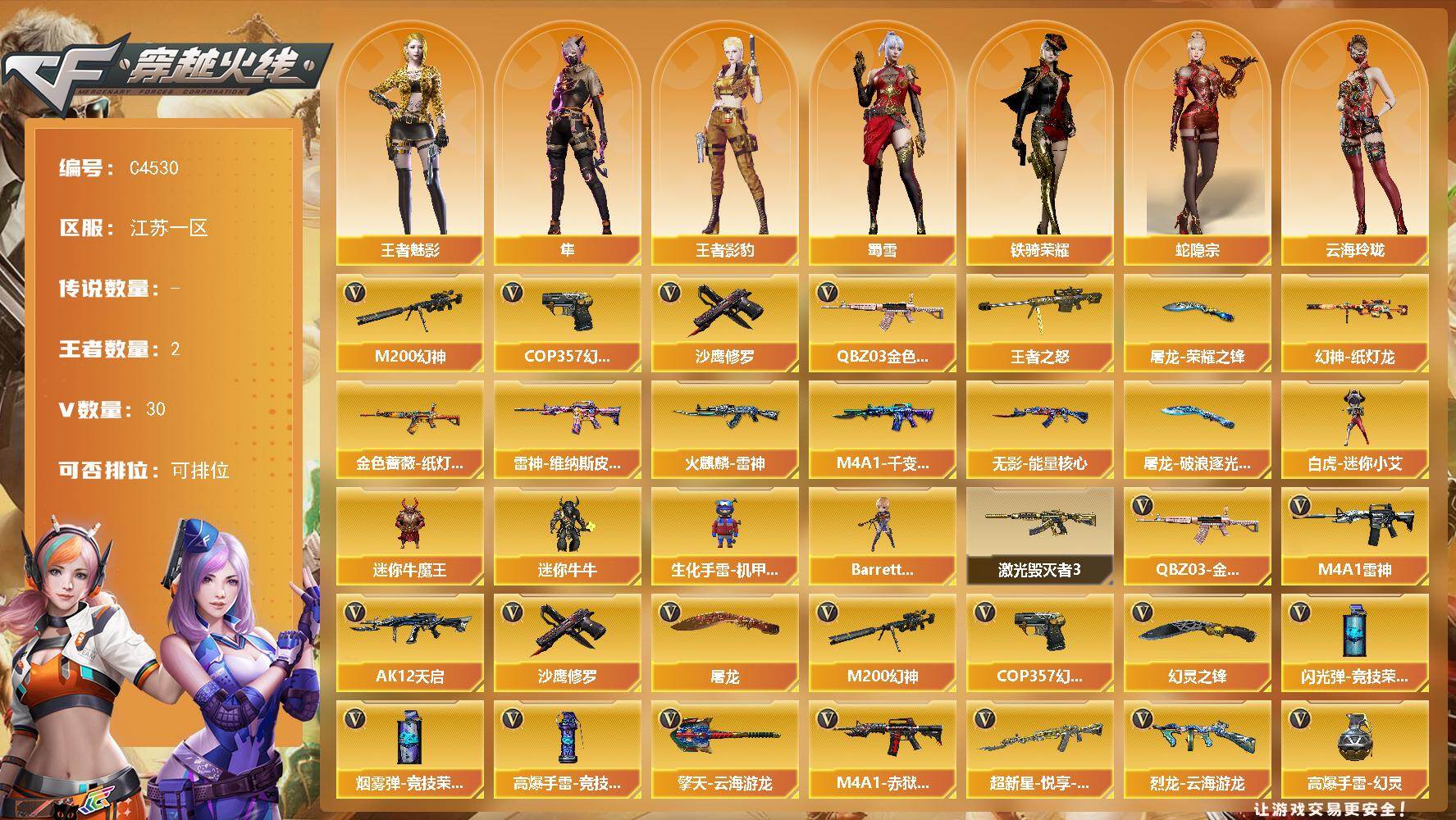 江苏一区-30V-2王者-0炫金【热门武器】:QBZ03-金色蔷薇,M200