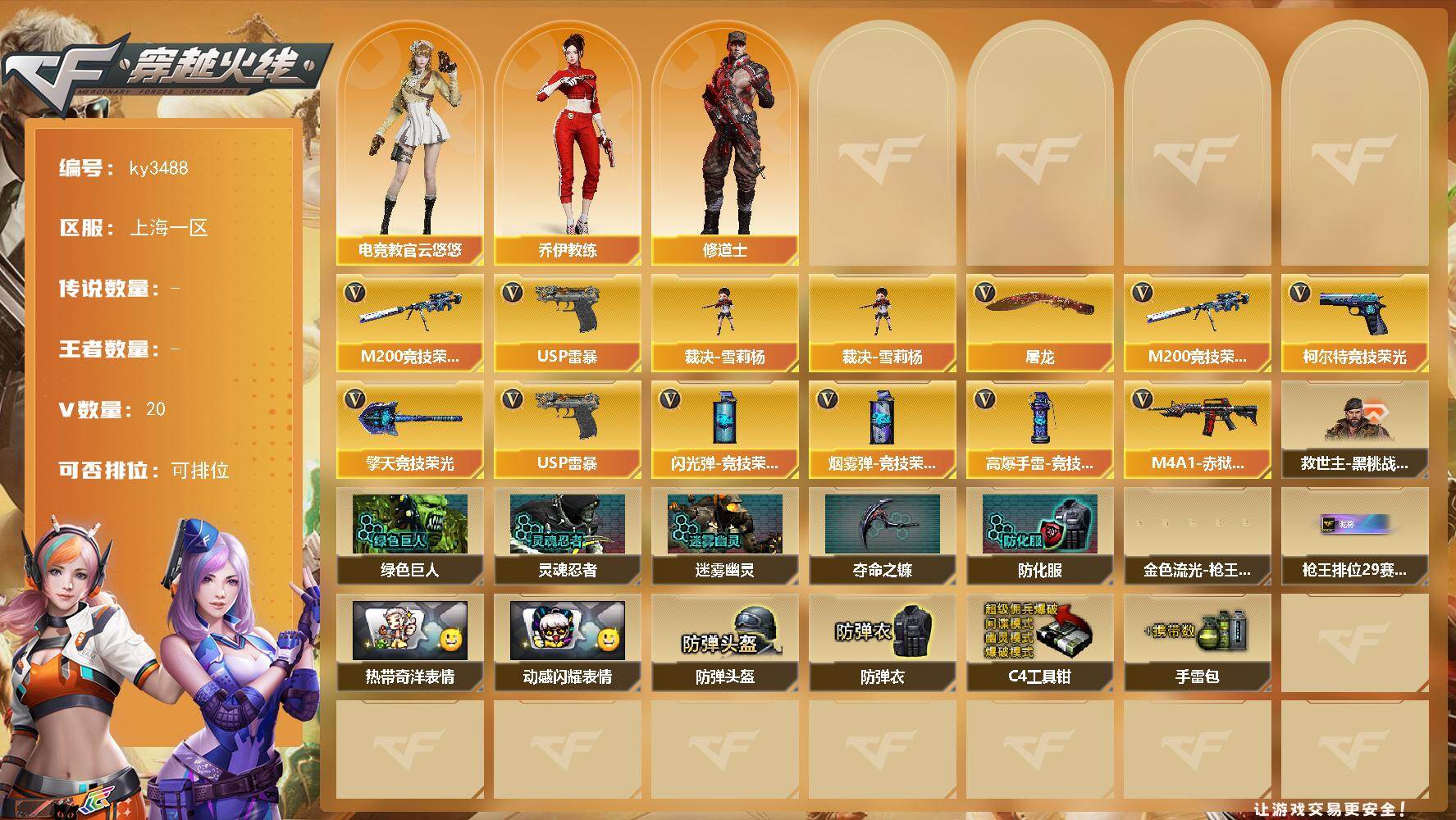 上海一区-20V-0王者-0炫金【热门武器】:M200-竞技荣光,裁决-雪莉