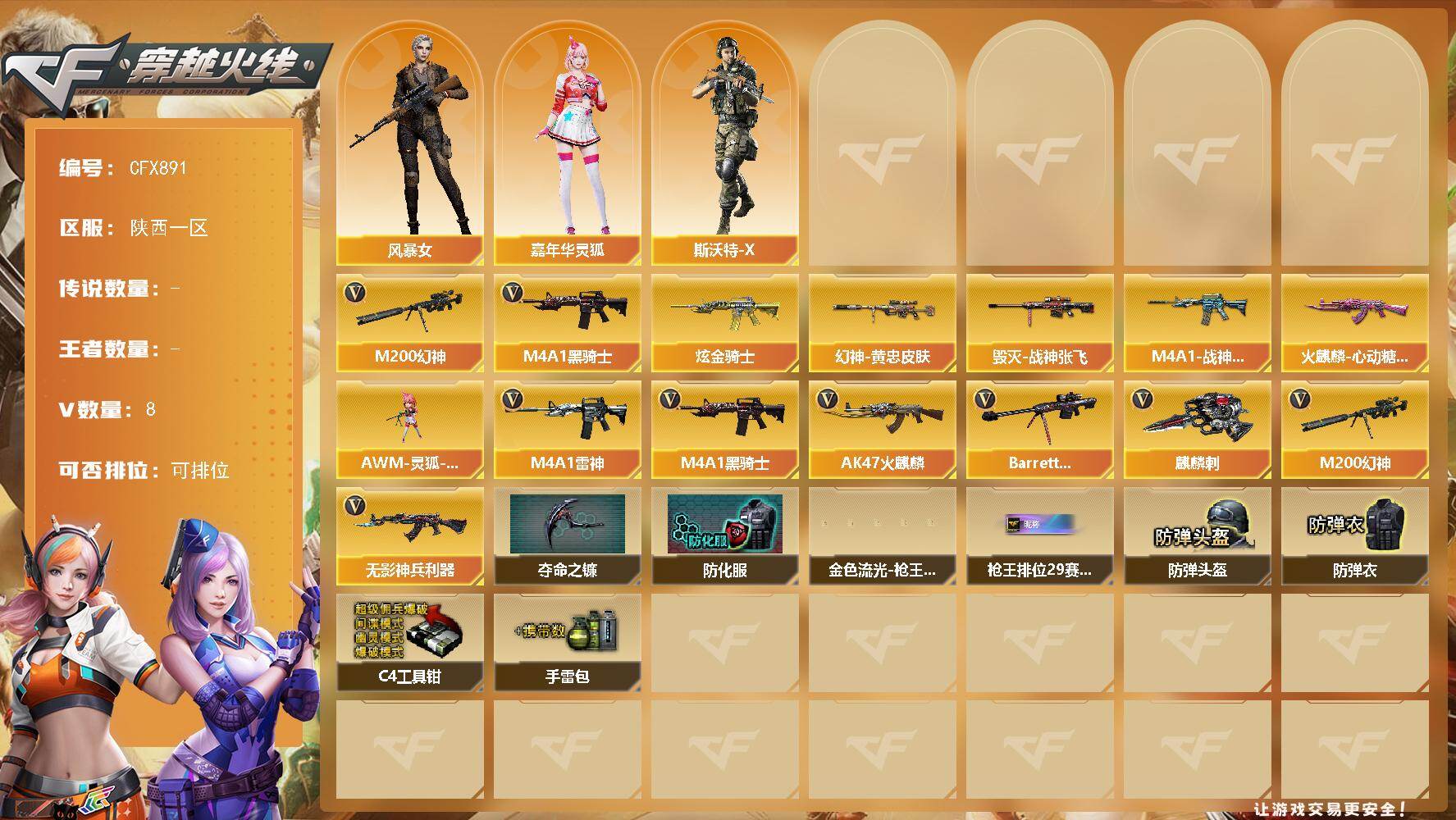 8V/76级/将帅/1炫金/M200_幻神/M4A1_黑骑士/炫金骑士/M200-幻神-黄忠皮肤/