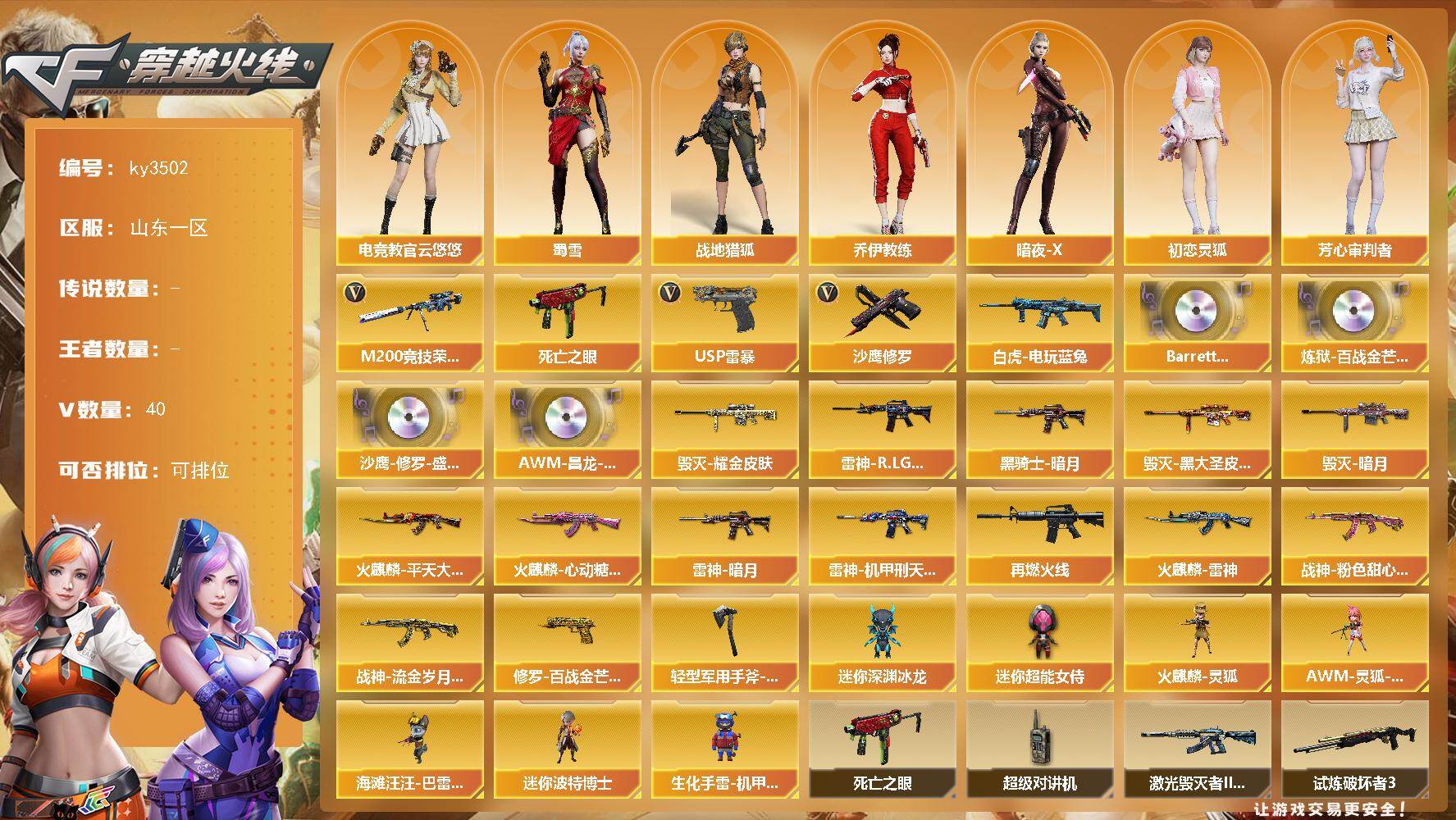 山东一区-40V-0王者-0炫金【热门武器】:M200-竞技荣光,死亡之眼,