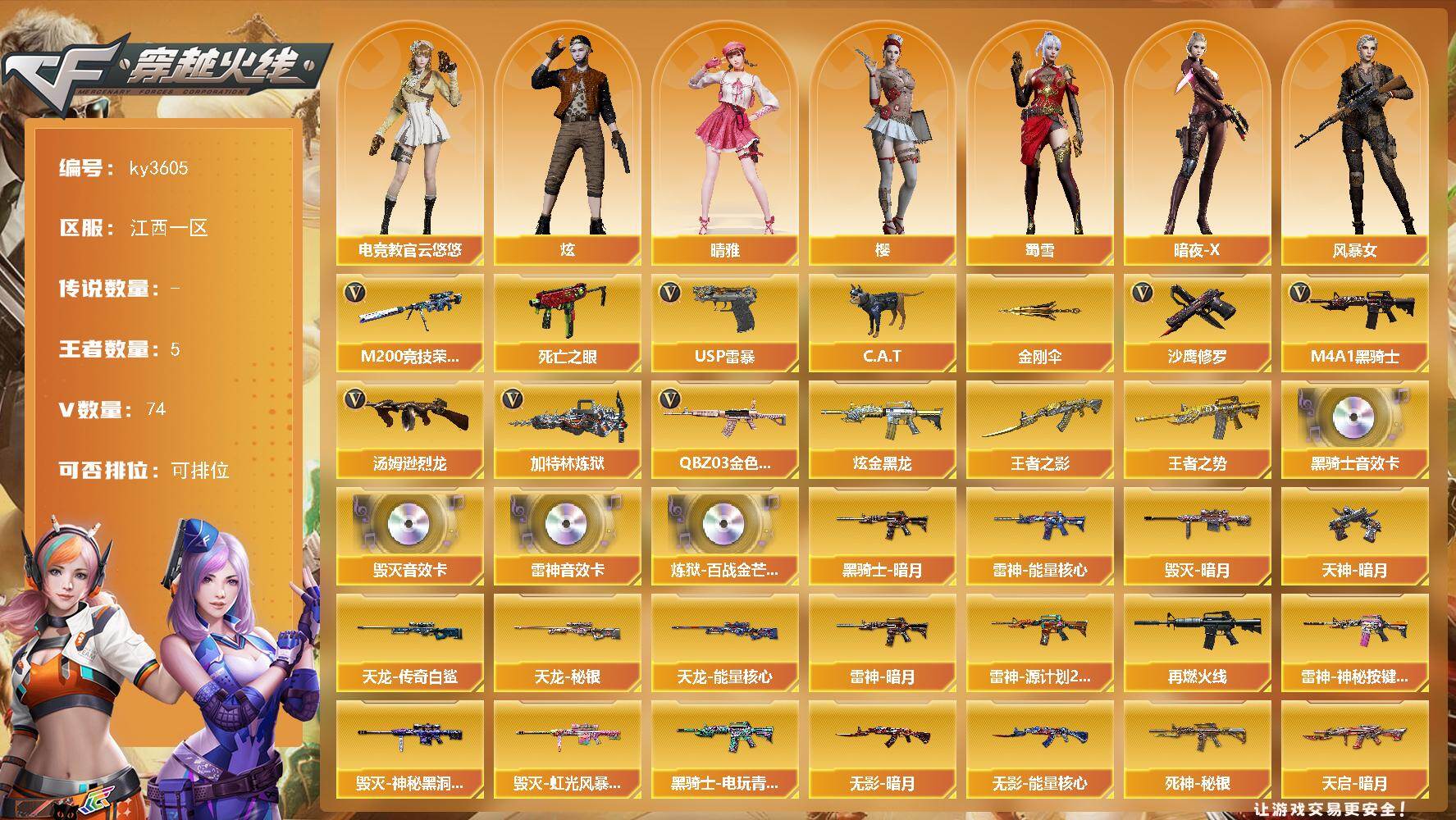 江西一区-74V-5王者-1炫金【热门武器】:QBZ03-金色蔷薇,M200
