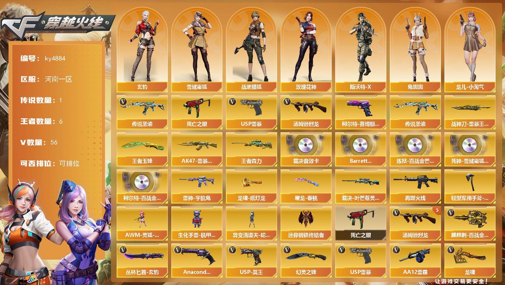 【商品标题】:河南一区-39V-1王者-2炫金【热门武器】:M200-竞技
