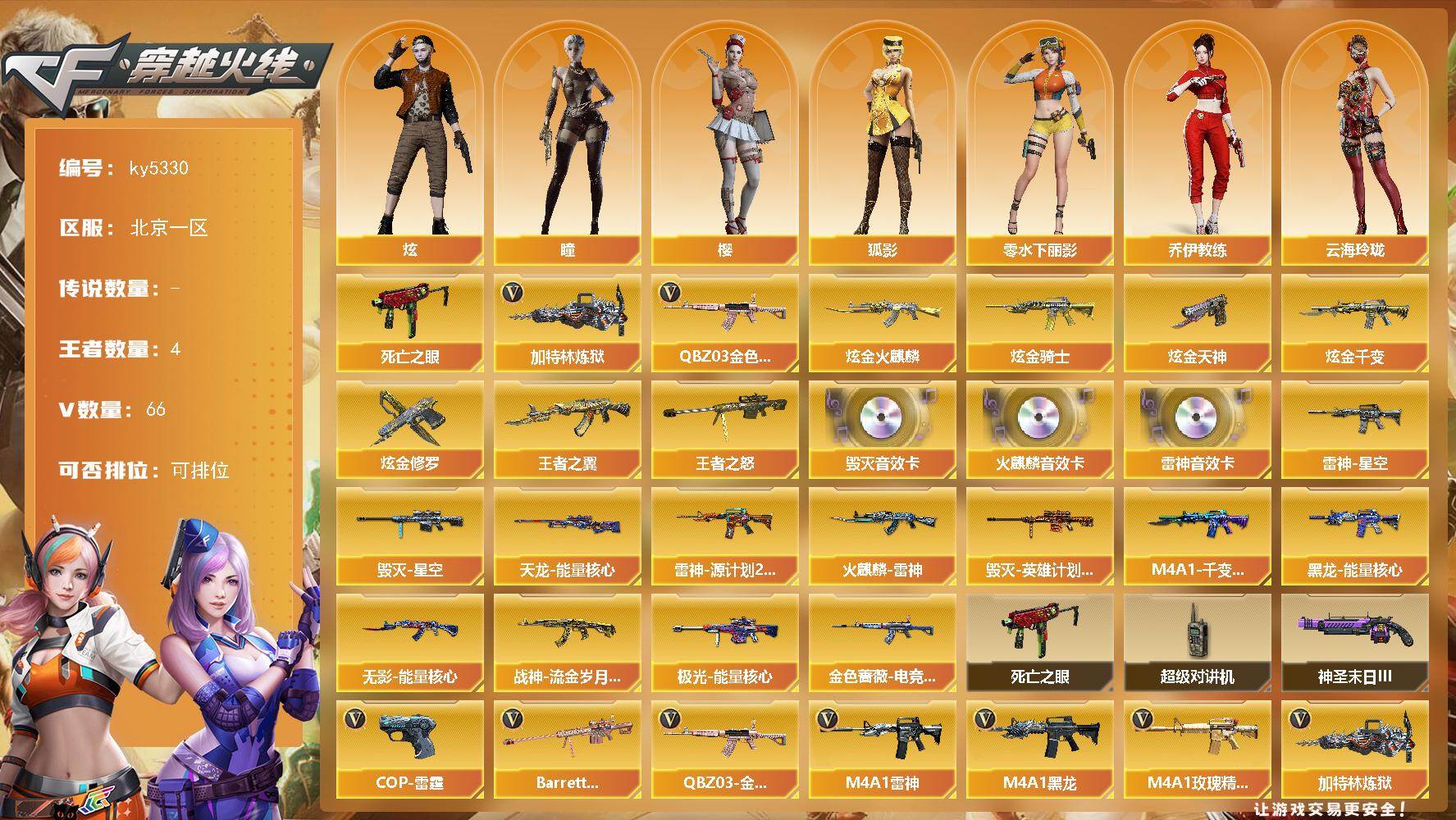 北京一区-68V-4王者武器数-6炫金武器数【热门武器】:QBZ03-金色