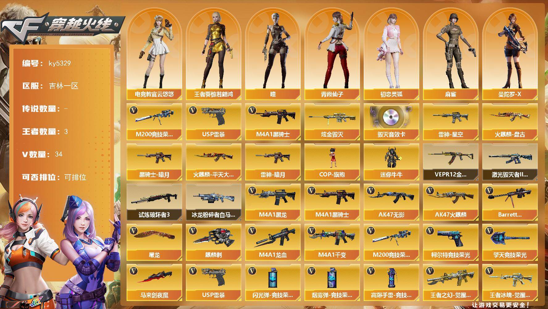 吉林一区-37V-3王者武器数-1炫金武器数【热门武器】:M200-竞技荣