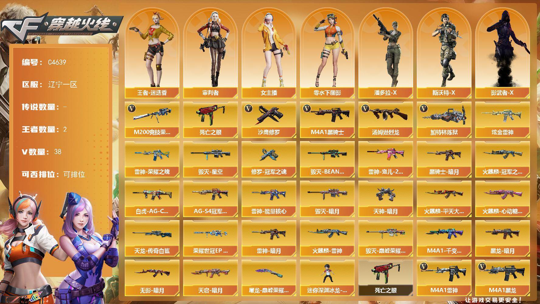 福建一区-79V-3王者武器数-4炫金武器数【热门武器】:M4A1-黑骑士