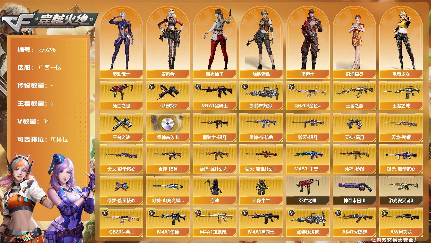 广西一区-33V-5王者武器数-0炫金武器数【热门武器】:QBZ03-金色