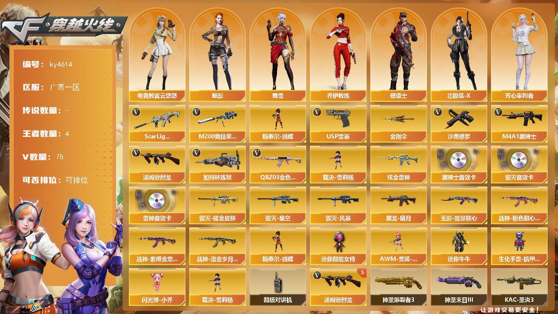 广西一区-75V-4王者-2炫金【热门武器】:QBZ03-金色蔷薇*2,Sc