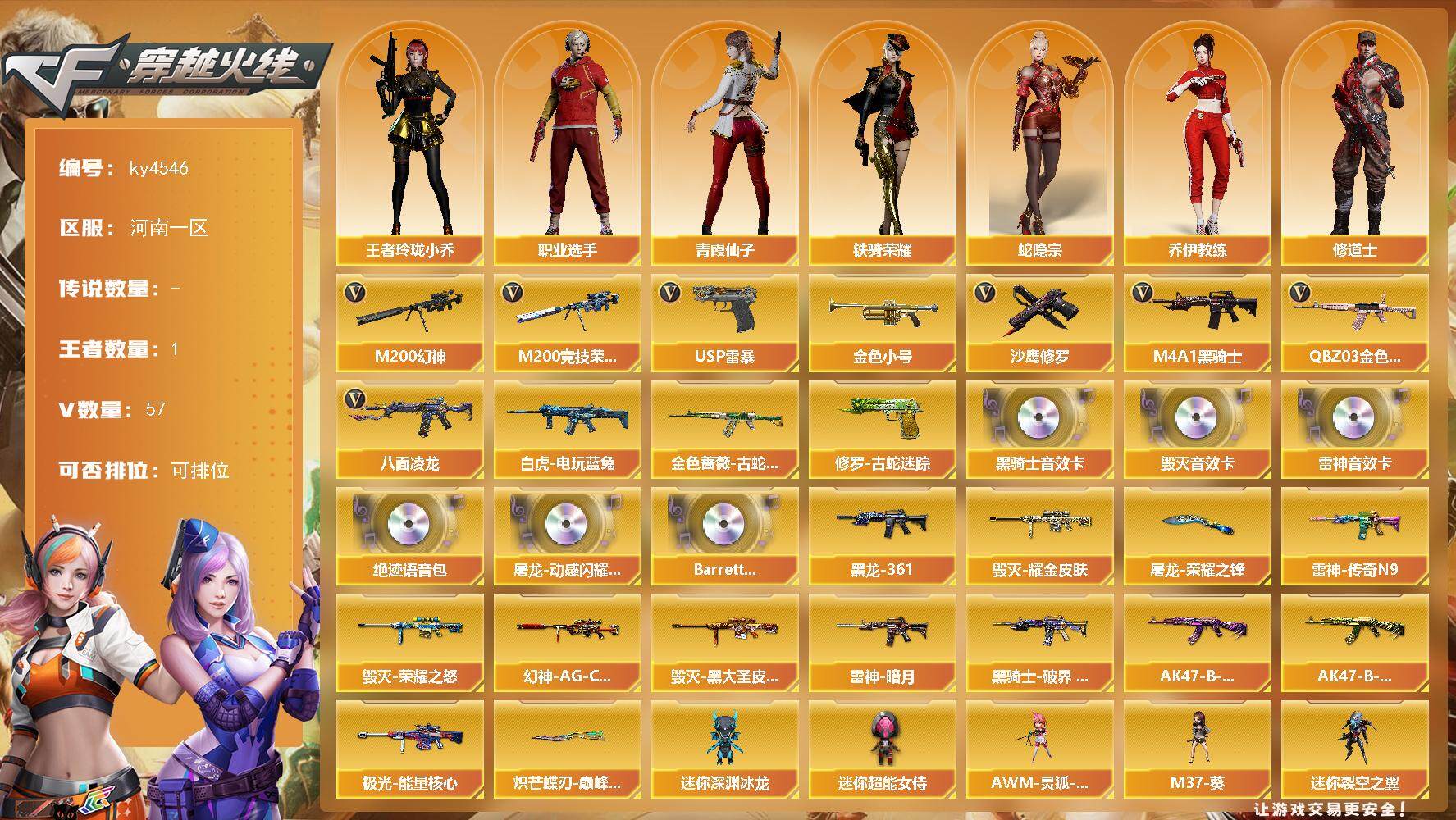河南一区-57V-1王者-0炫金【热门武器】:QBZ03-金色蔷薇,M200