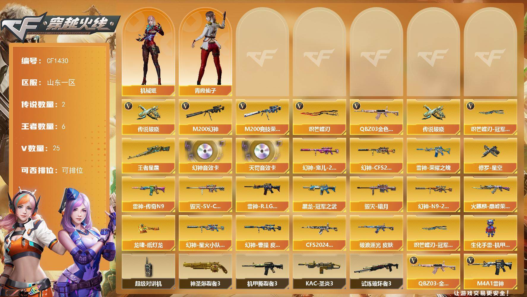 双全号 QBZ03-金色蔷薇,M200-幻神,死亡之眼,M4A1-黑骑士*4