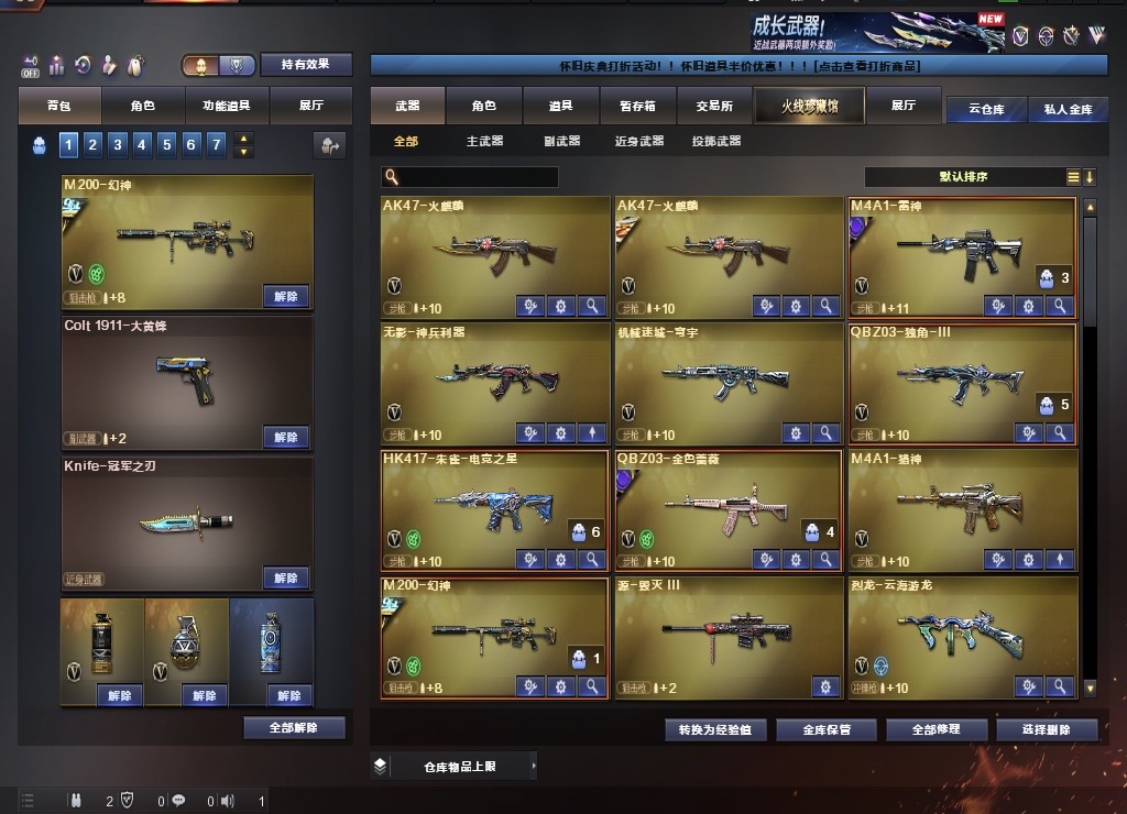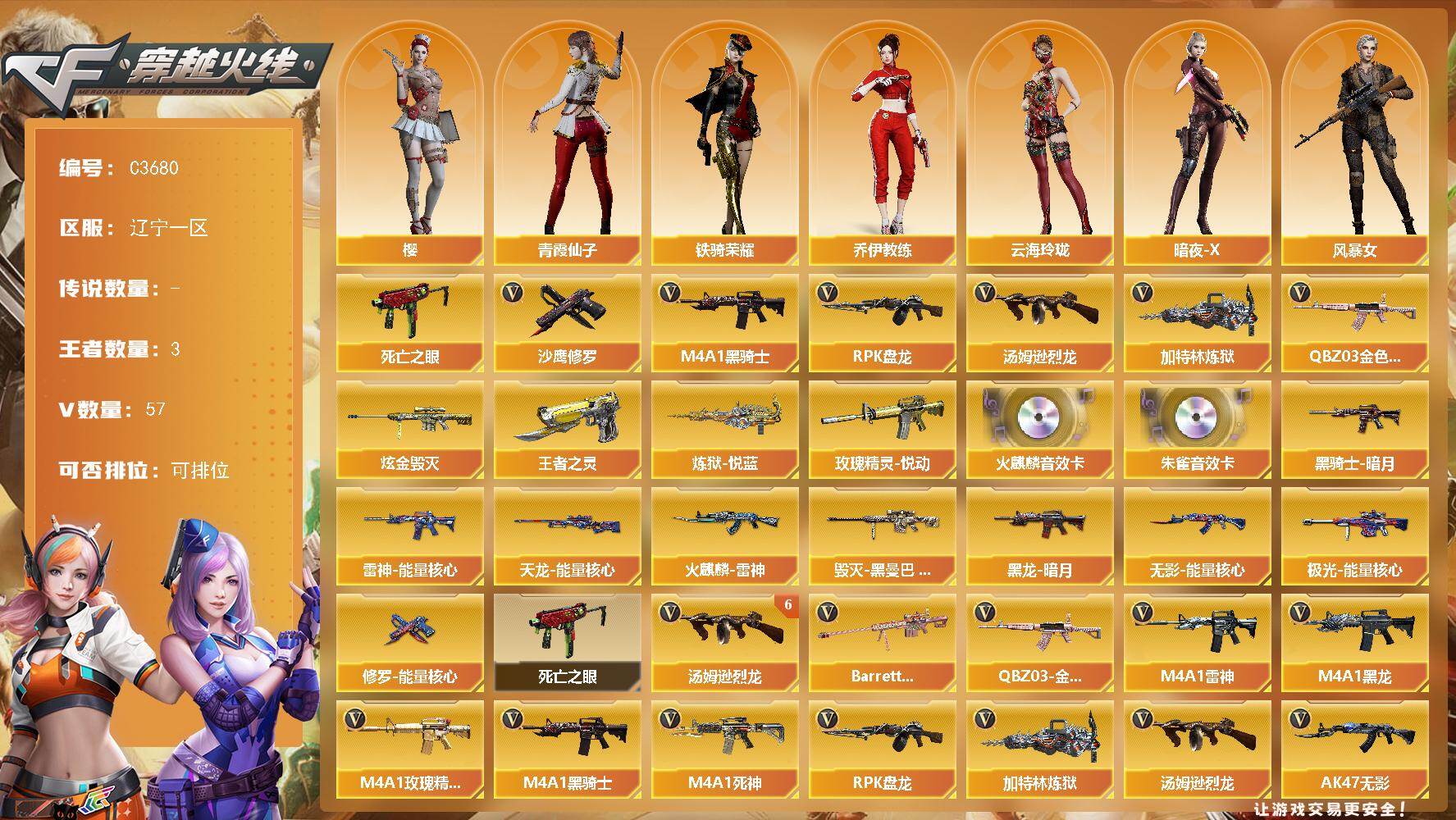 上海一区-72V-4王者-4炫金【双全号 死亡之眼,毒蜂*2,M4A1-黑骑士