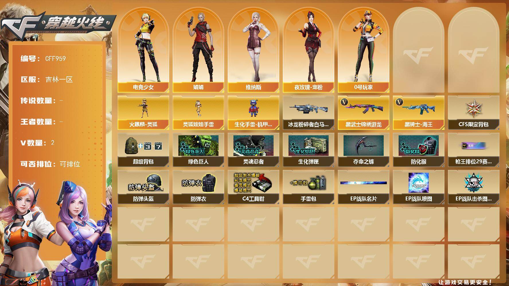 2V/54级/校官/电竞少女/娟娟/0号玩家/维纳斯