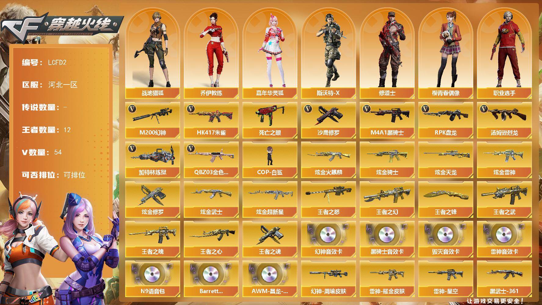 幻神双皮肤!河北一区-52V-12王者武器数-2炫金武器数