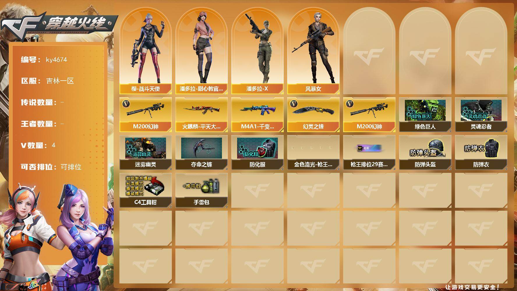 吉林一区-4V-0王者-0炫金【热门武器】:M200-幻神