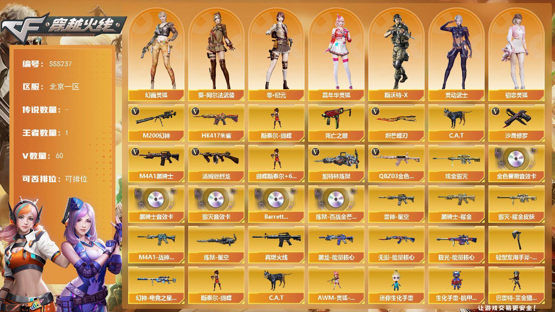 北京一区-61V-1王者武器数-1炫金武器数【热门武器