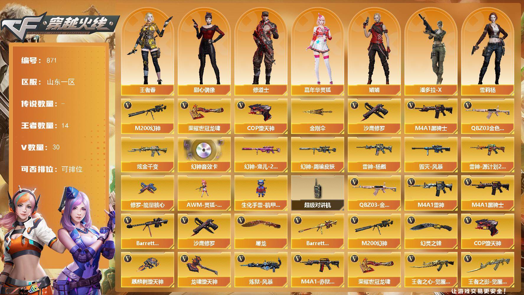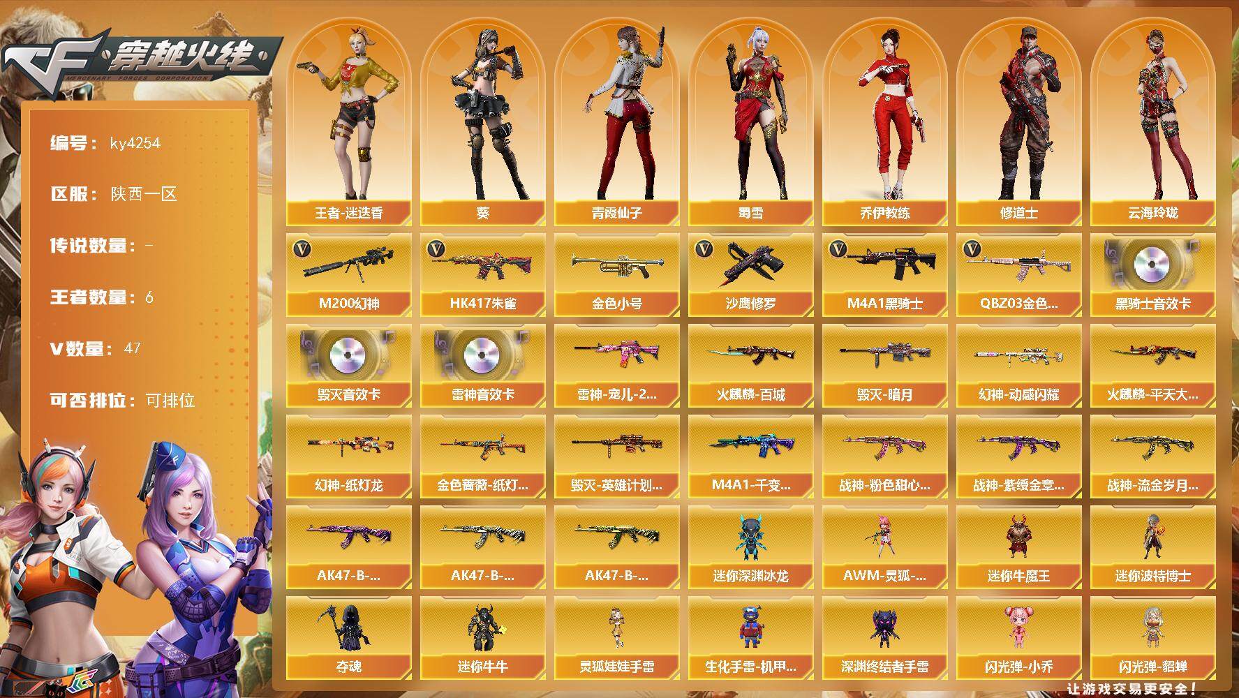 山西一区-40V-5王者-0炫金【传说角色】:传说影煞【热门武器】:QBZ