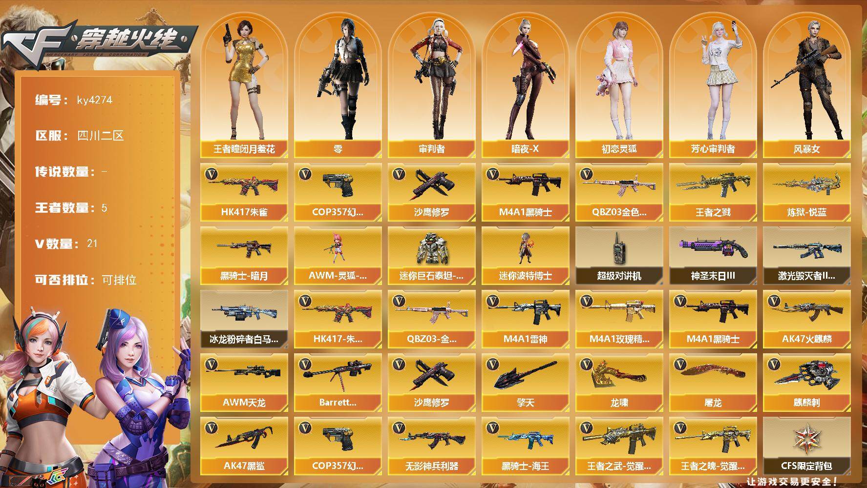 四川二区-21V-5王者-0炫金【热门武器】:QBZ03-金色蔷薇,HK41