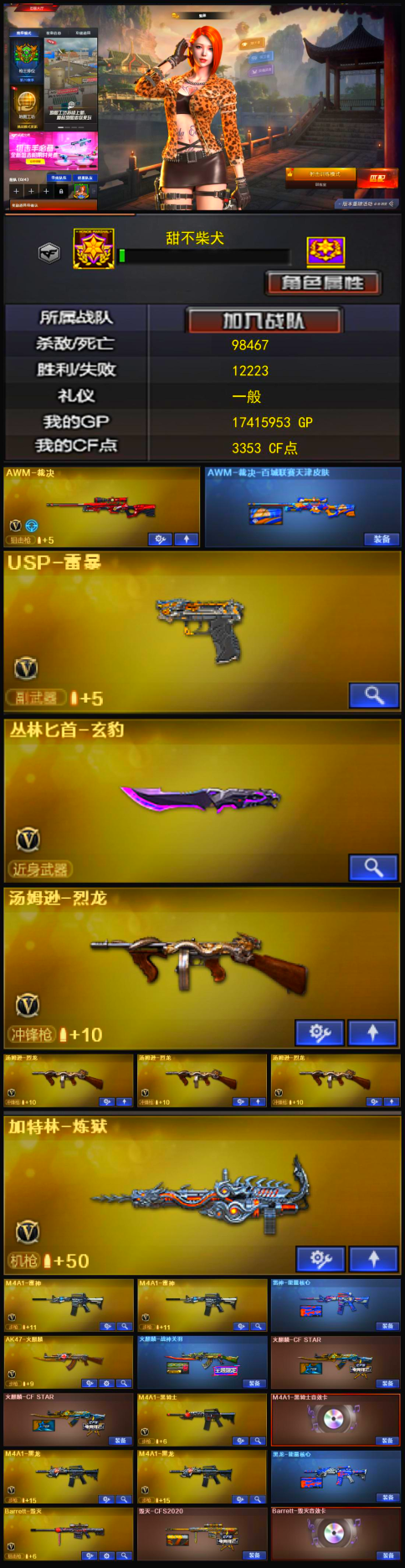 湖南一区-40V-7王者-0炫金【热门武器】:死亡之眼,M4A1-黑骑士,汤