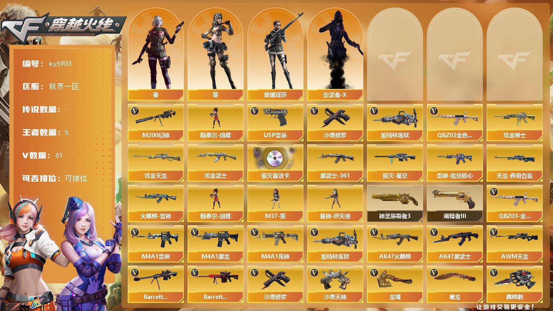 陕西一区-63V-5王者武器数-3炫金武器数【热门武器】:QBZ03-金色蔷