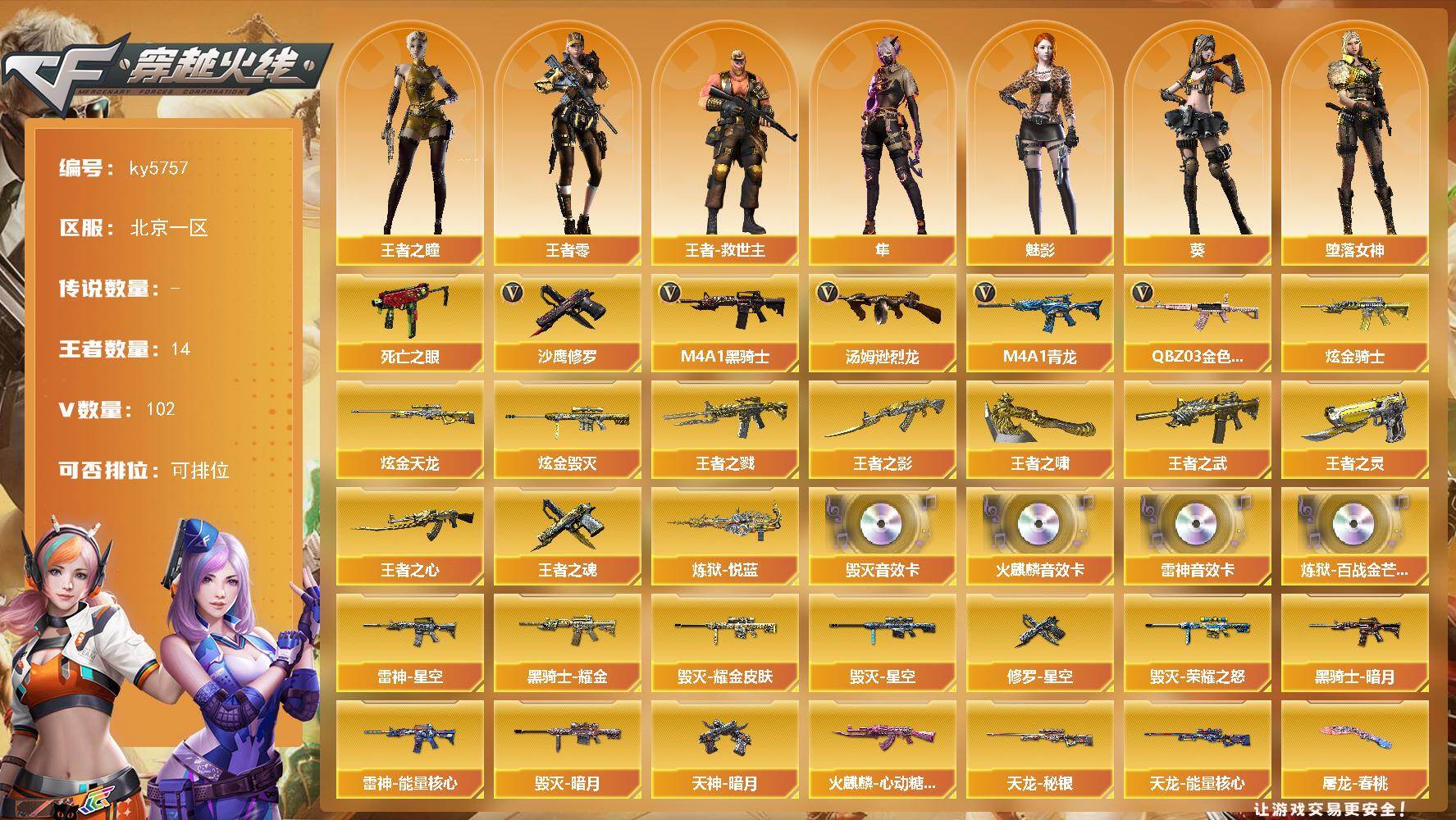 北京一区-109V-14王者武器数-5炫金武器数【热门武器】:QBZ03-金