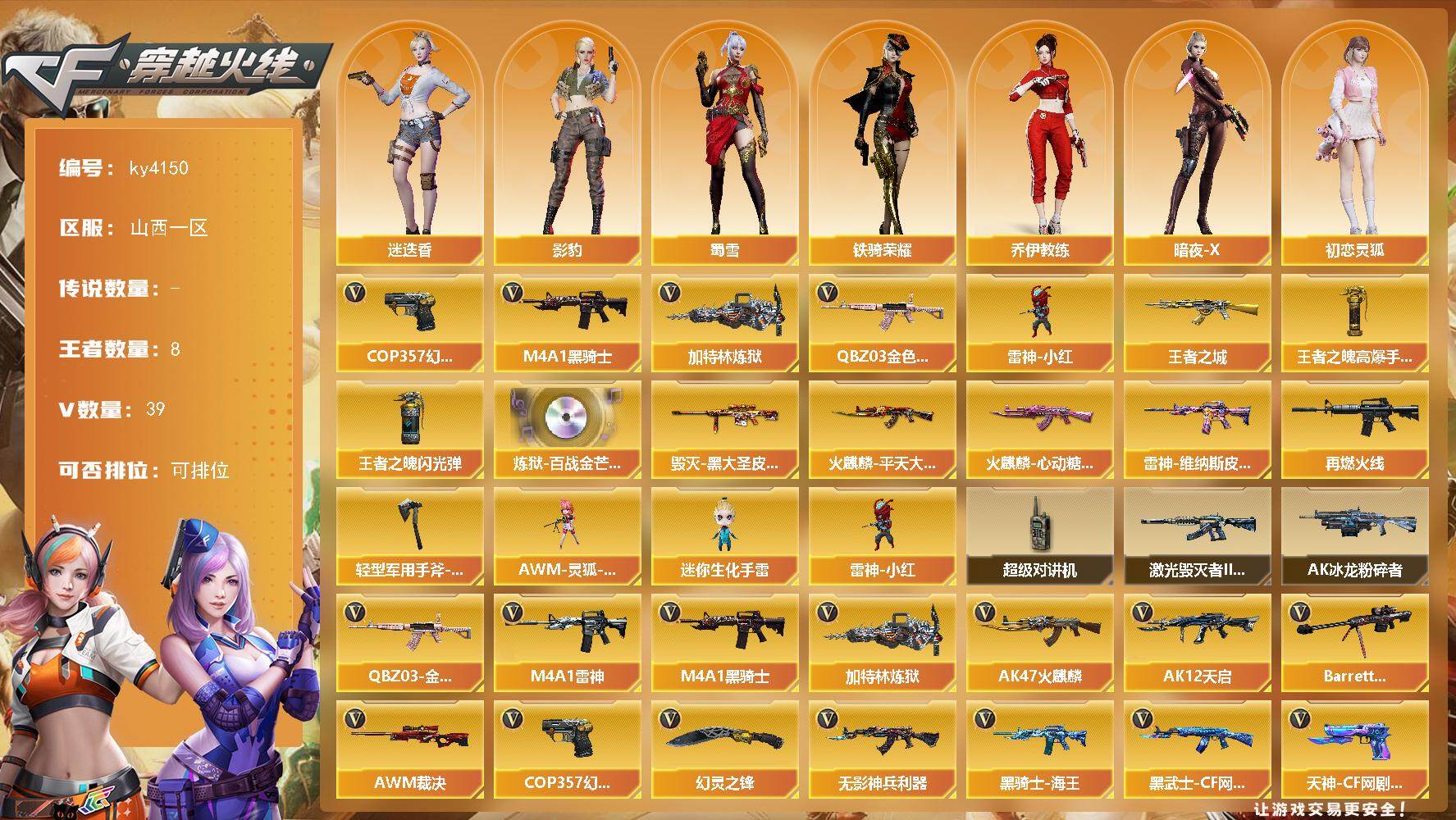 陕西一区-78V-22王者-4炫金【热门武器】:QBZ03-金色蔷薇,HK4
