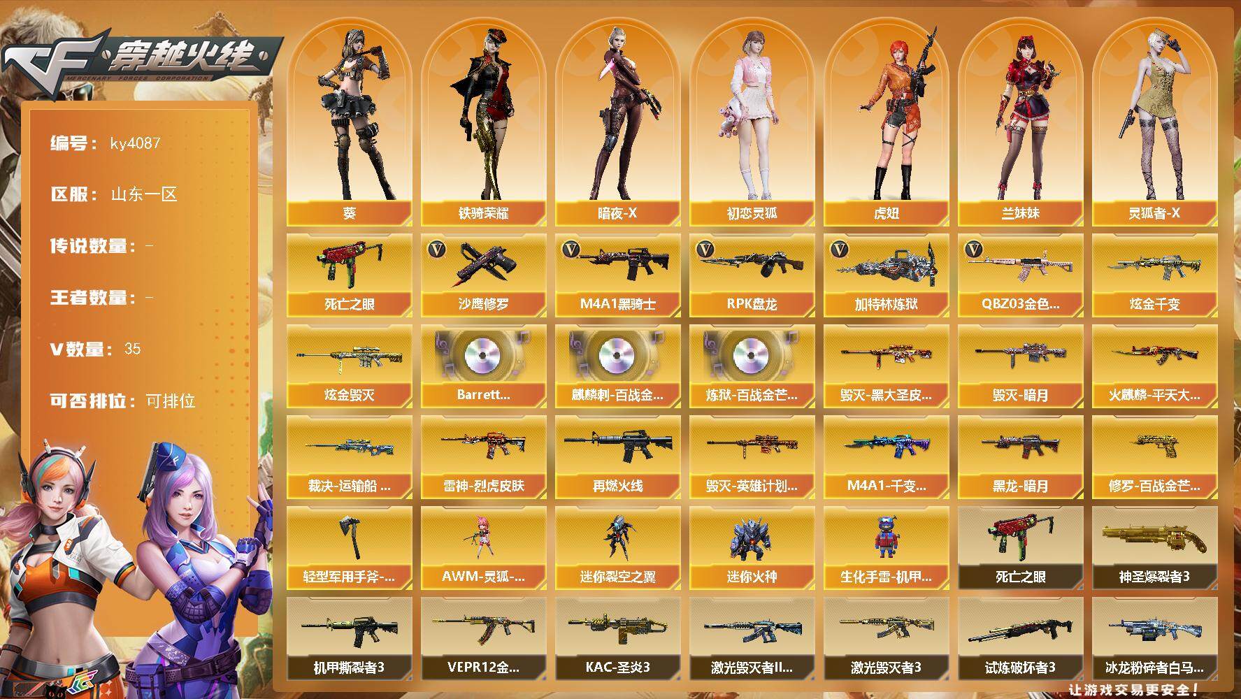 山东一区-35V-0王者-2炫金【热门武器】:QBZ03-金色蔷薇,死亡之眼