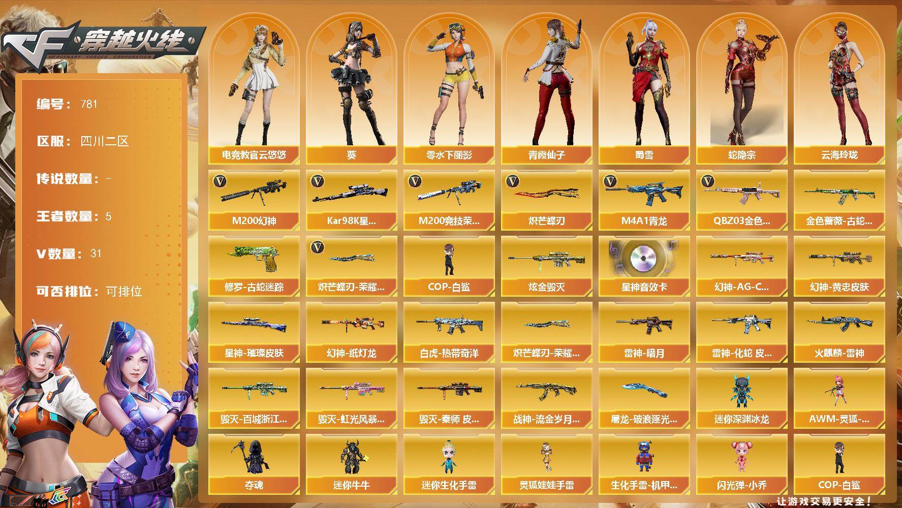 四川二区-31V-5王者-1炫金【热门武器】:QBZ03-金色蔷薇,M4A1