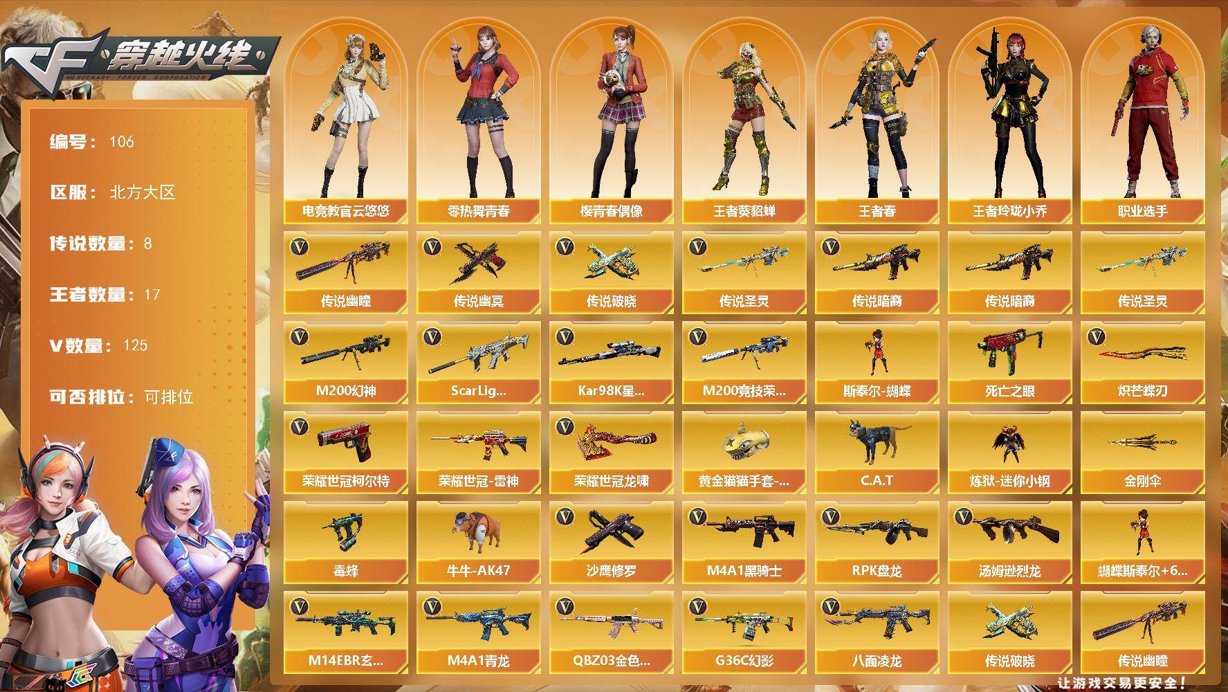 北方大区-125V-17王者-2炫金【传说武器】:传说暗裔,传说圣灵,传说幽
