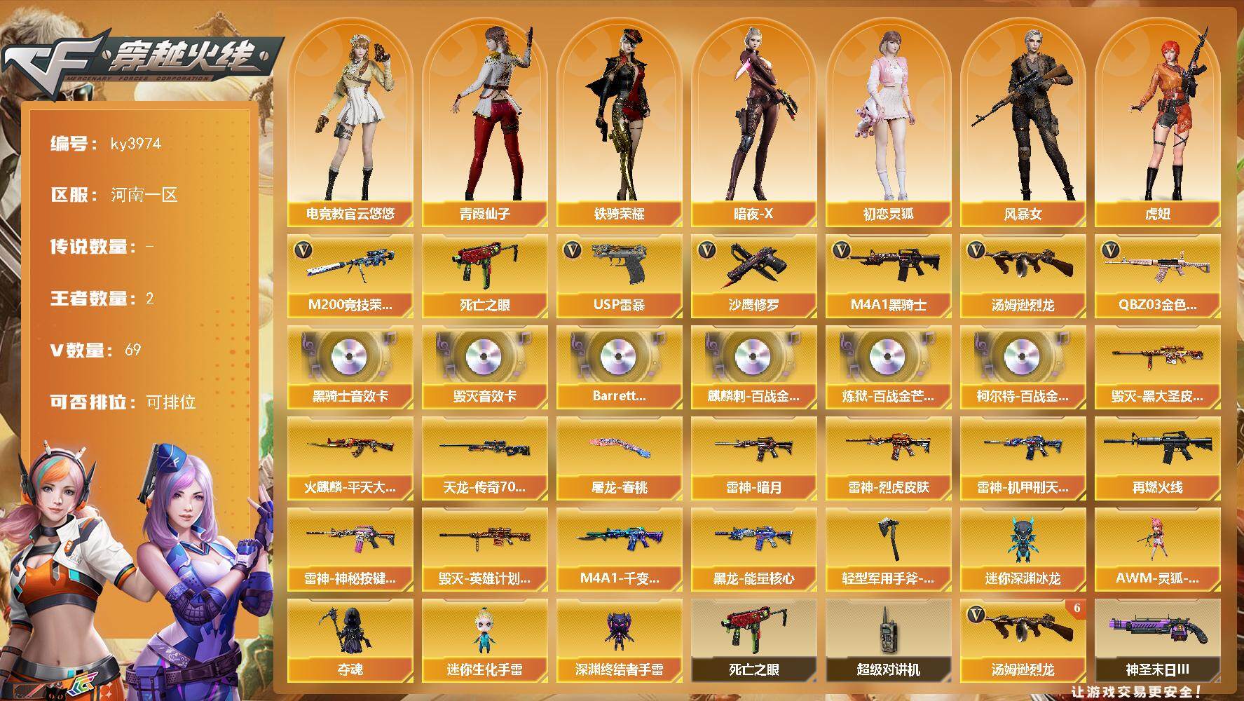 河南一区-69V-2王者-0炫金【热门武器】:QBZ03-金色蔷薇,M200