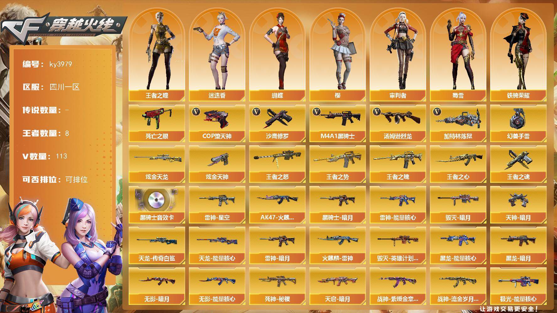 四川一区-113V-8王者-2炫金【热门武器】:死亡之眼,M4A1-黑骑士,
