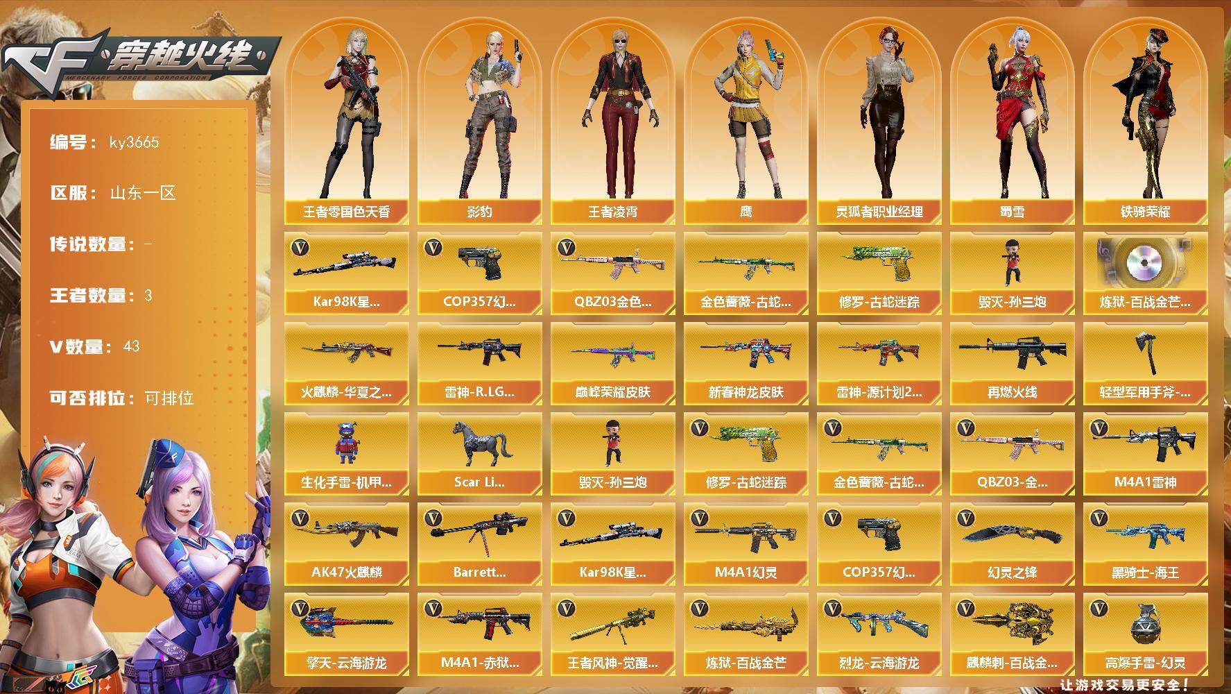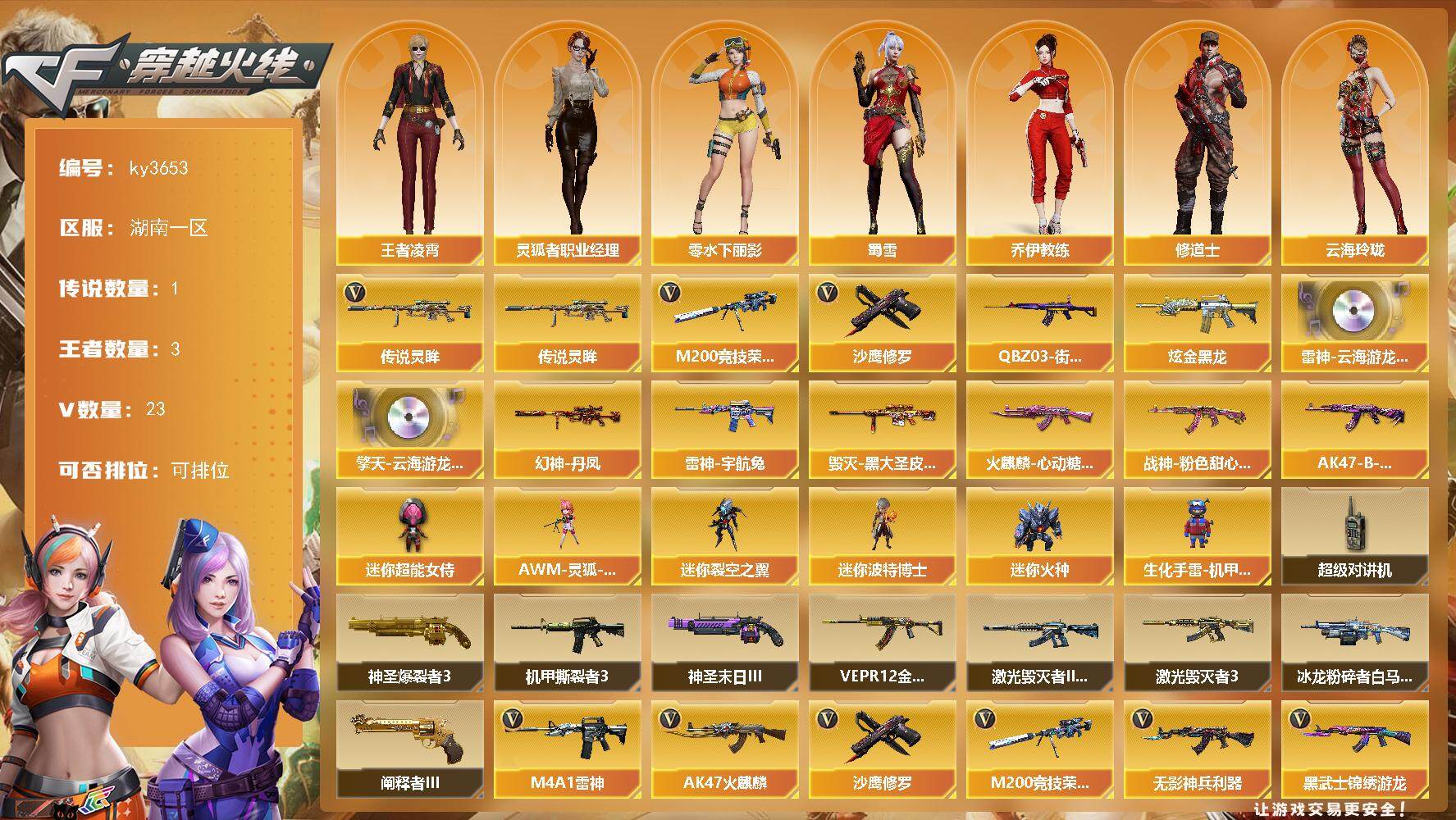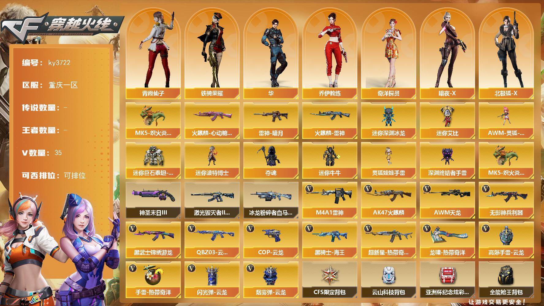 重庆一区-35V-0王者-0炫金 【热门武器】:MK5-炽火炎龙 【皮肤】:雷