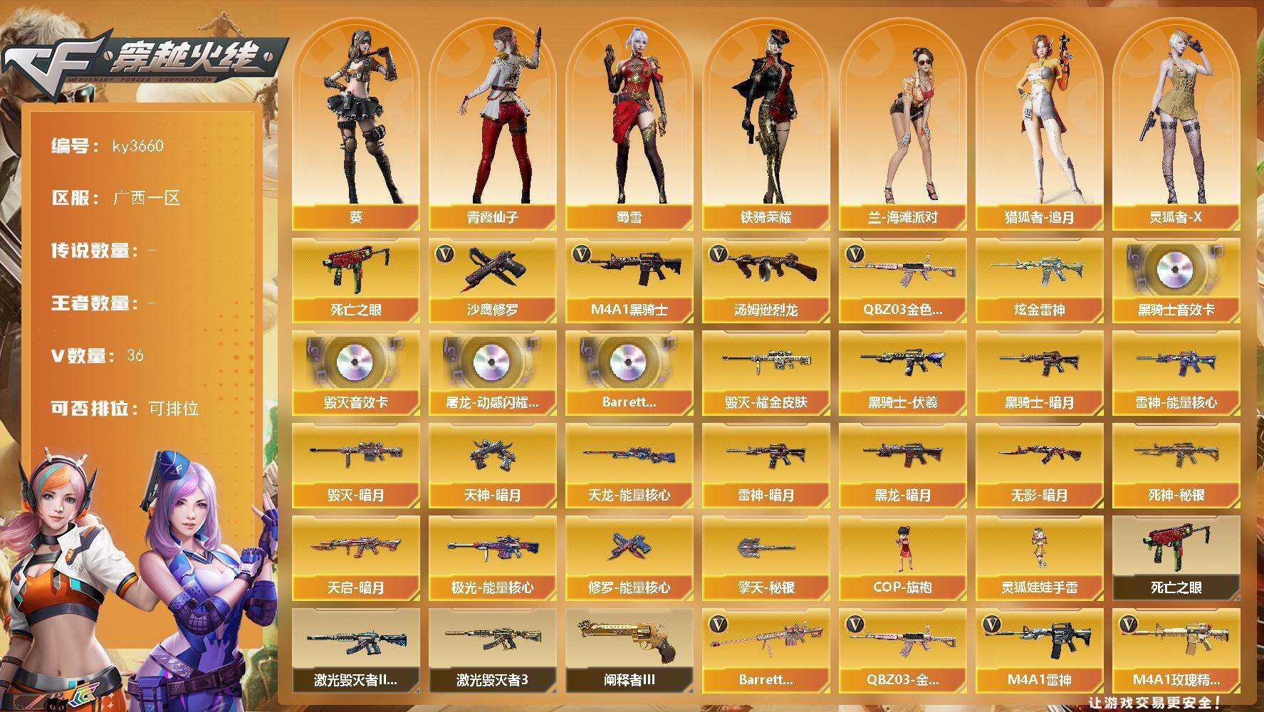 广西一区-36V-0王者-1炫金 【热门武器】:QBZ03-金色蔷薇,死亡之眼