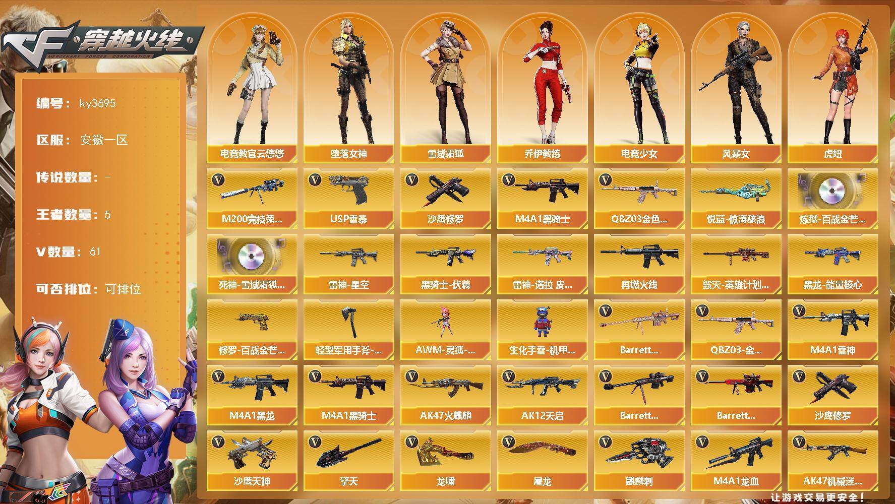 安徽一区-61V-5王者-0炫金 【热门武器】:QBZ03-金色蔷薇,M200