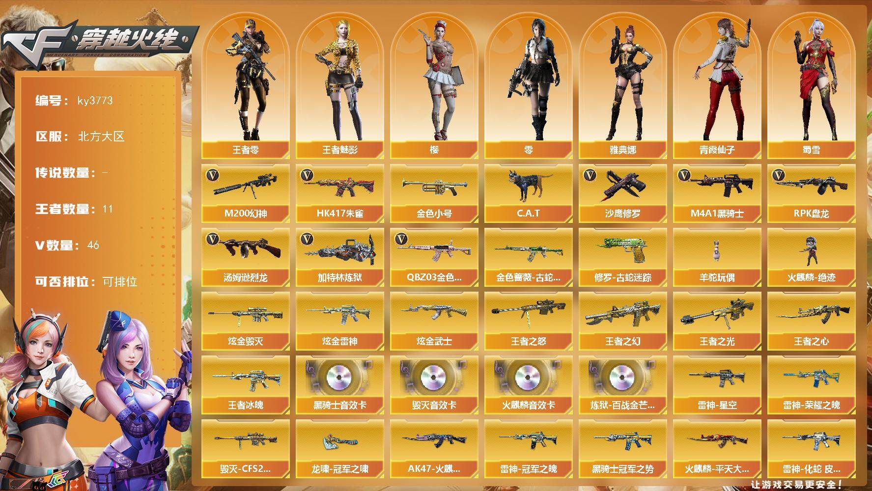 北方大区-46V-11王者-5炫金 【热门武器】:QBZ03-金色蔷薇,HK4