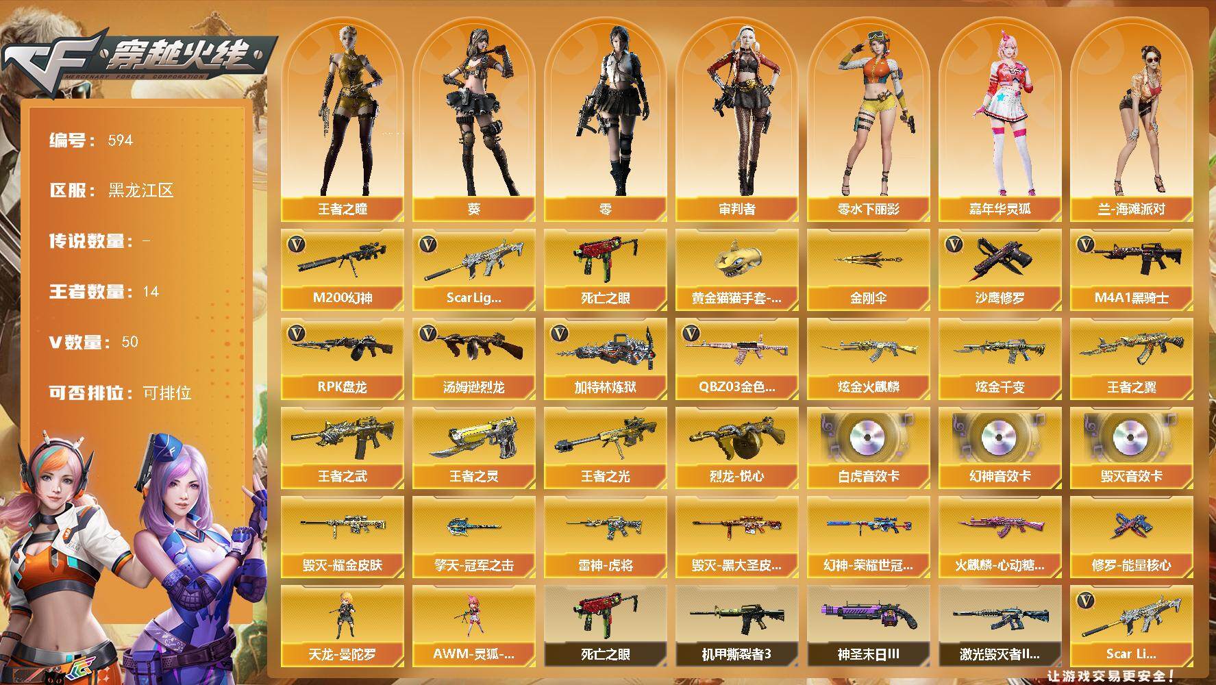 上海一区-36V-4王者-2炫金 【热门武器】:QBZ03-金色蔷薇,M200