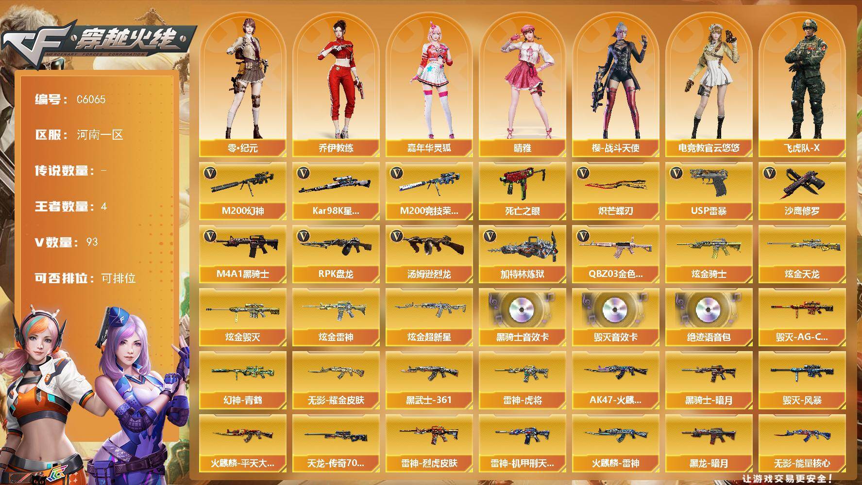 河南一区-97V-4王者武器数-6炫金武器数【