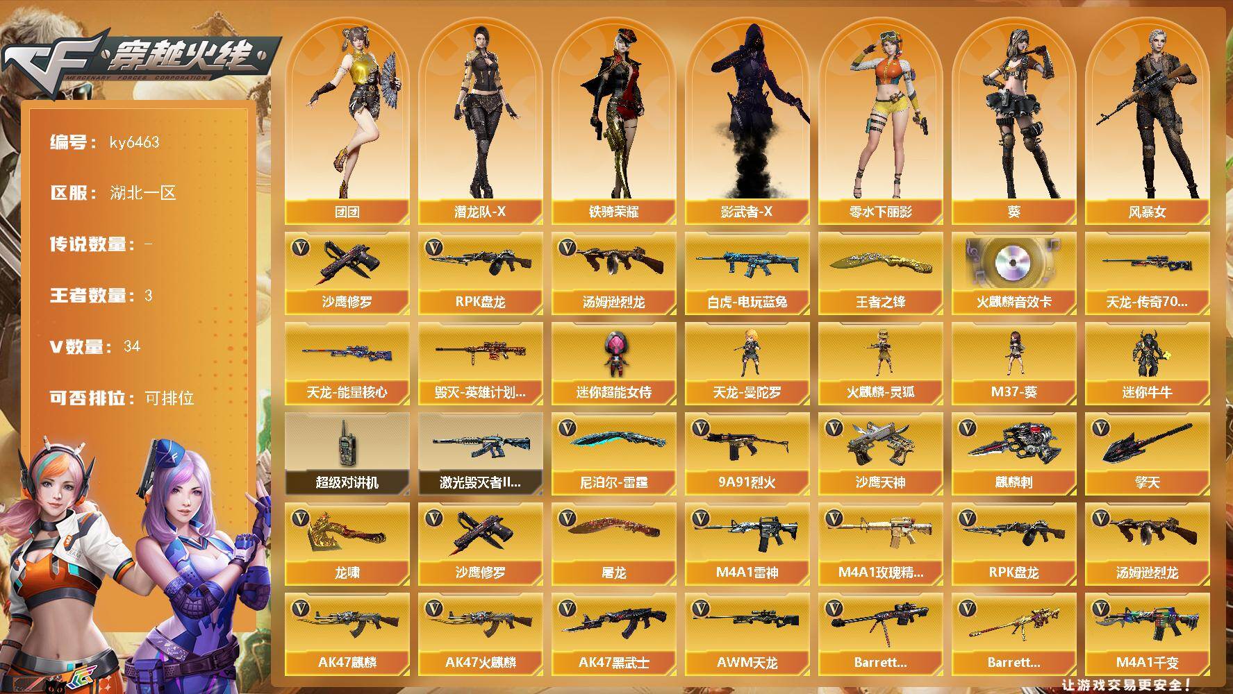 湖北一区-36V-3王者武器数-0炫金武器数