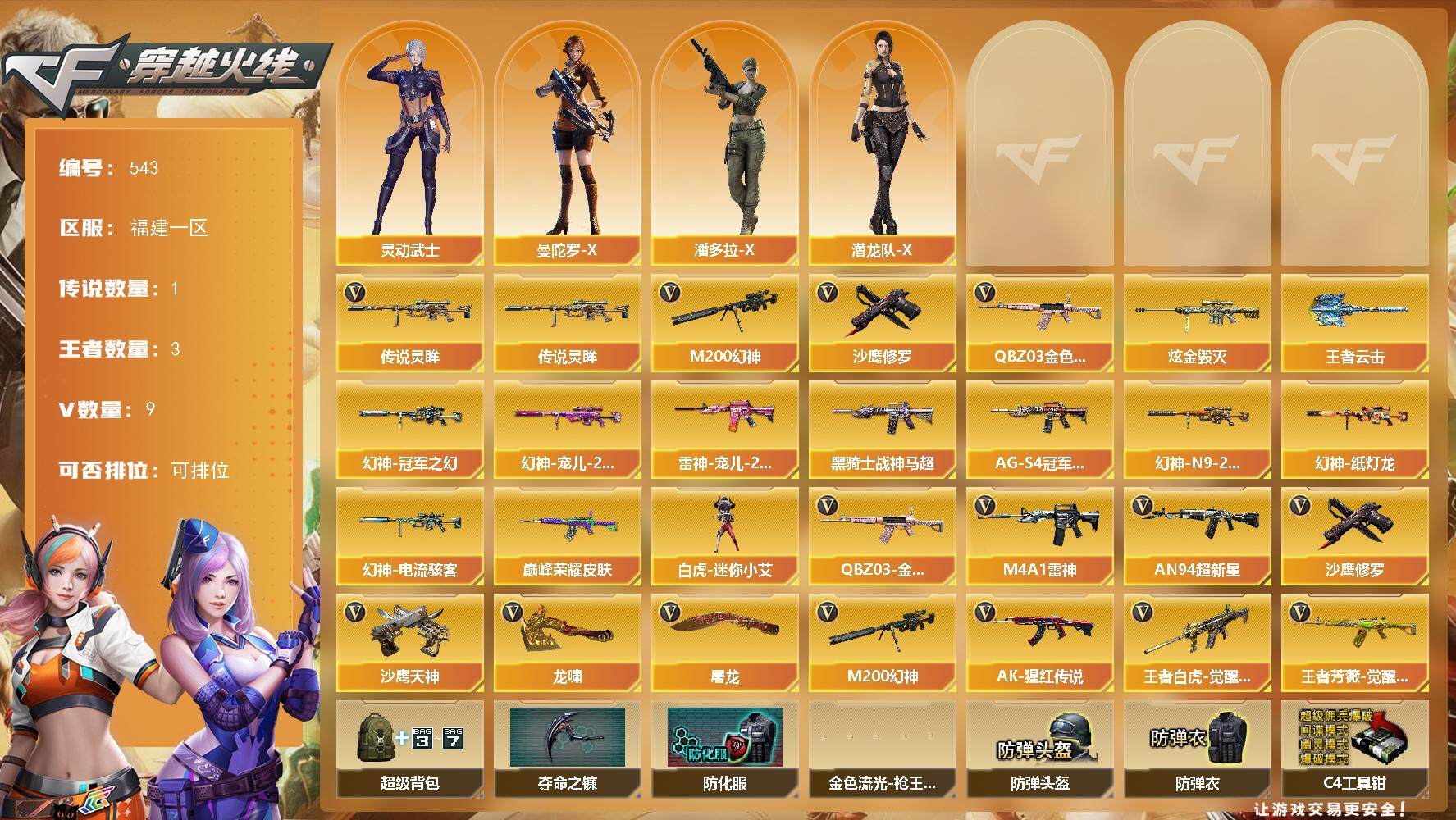 福建一区-9V-3王者-1炫金 【传说武器】:传说灵眸 【热门武器】:传说灵眸