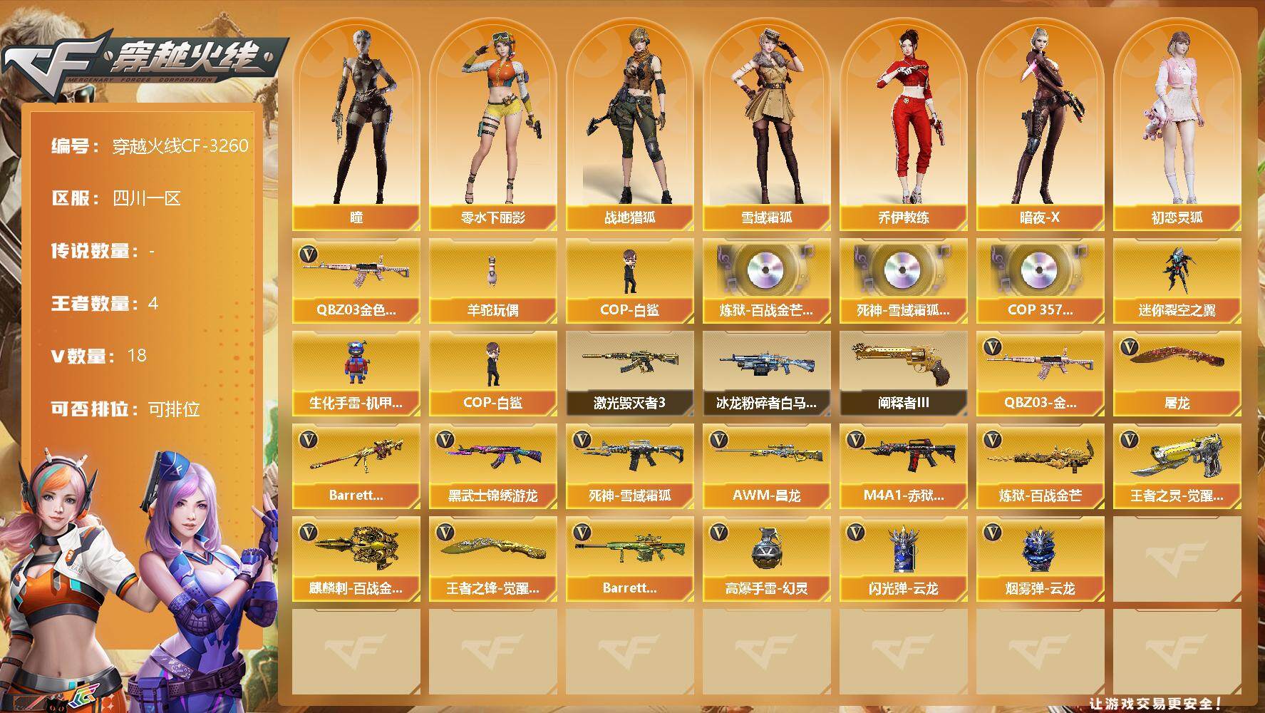 四川一区-18V-4王者-0炫金 【热门武器】:QBZ03-金色蔷薇,羊驼玩偶