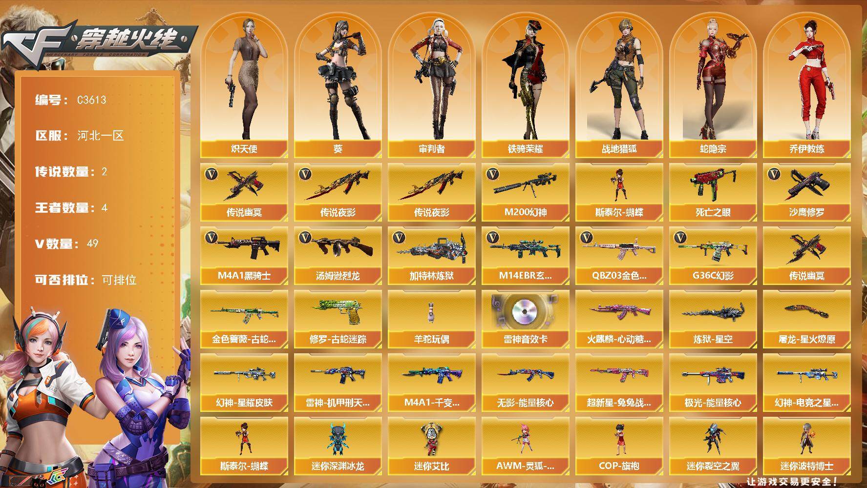 河北一区-17V-2王者-0炫金【热门武器】:M200-幻神,柯尔特-荣耀世