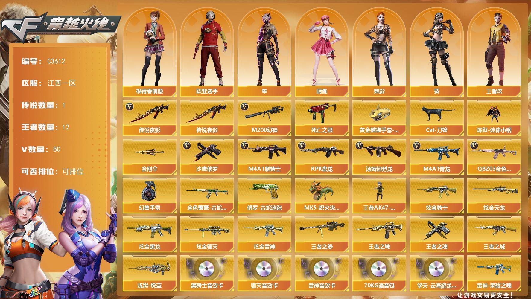 江西一区-69V-5王者-4炫金【热门武器】:死亡之眼*9,M4A1-黑骑士