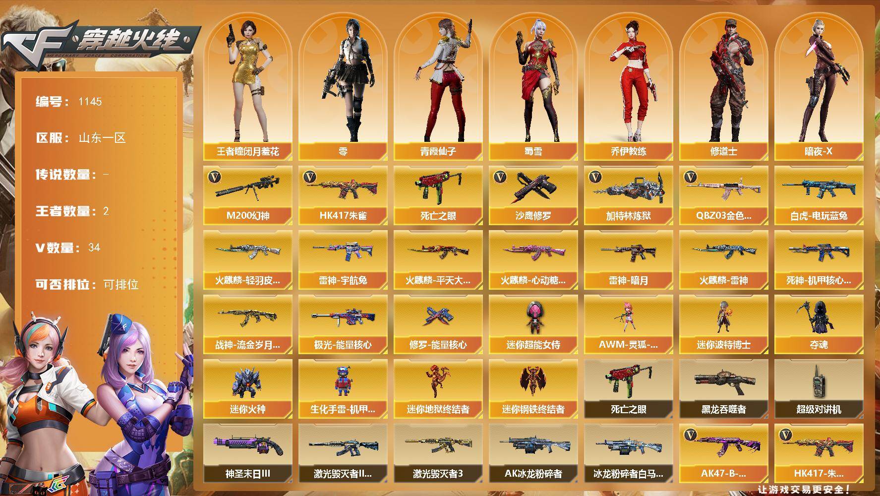 山东一区-34V-2王者-0炫金【热门武器】:QBZ03-金色蔷薇,HK41