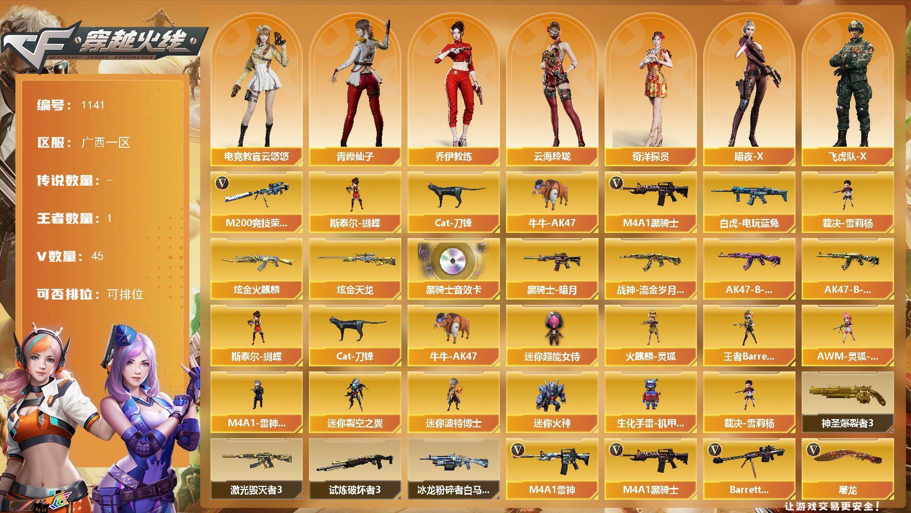 广西一区-45V-1王者-2炫金【热门武器】:M200-竞技荣光,白虎-电玩