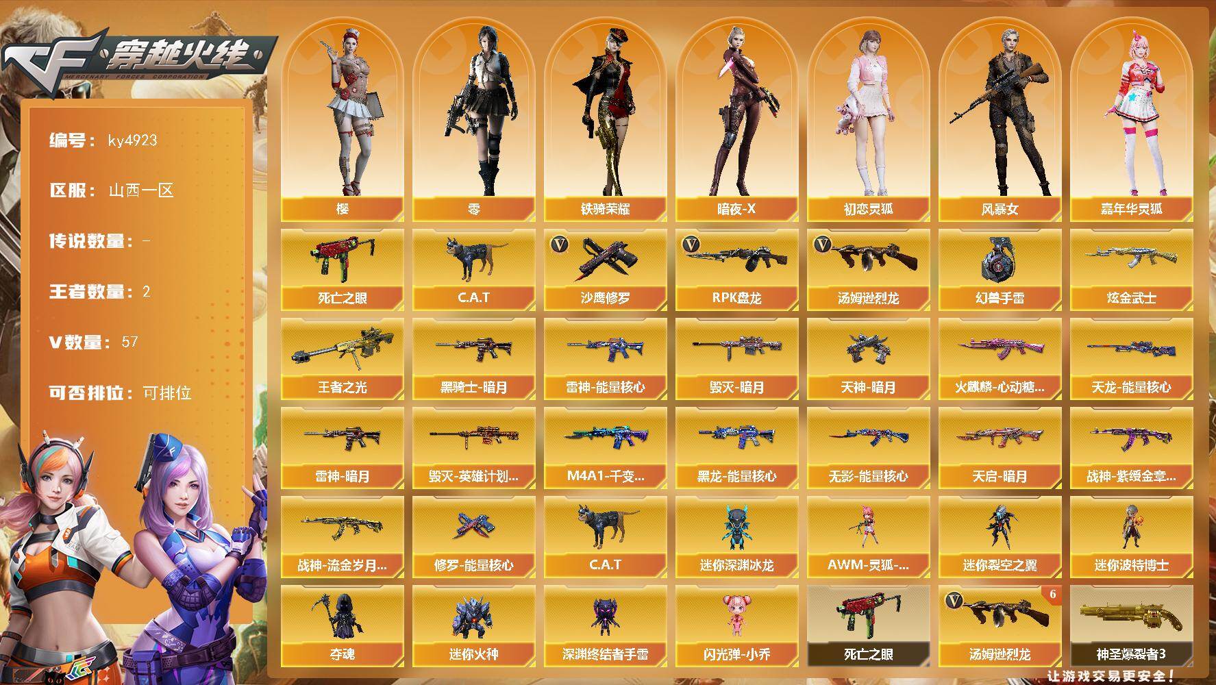山西一区-57V-2王者-1炫金【热门武器】:死亡之眼*2,C.A.T,汤姆
