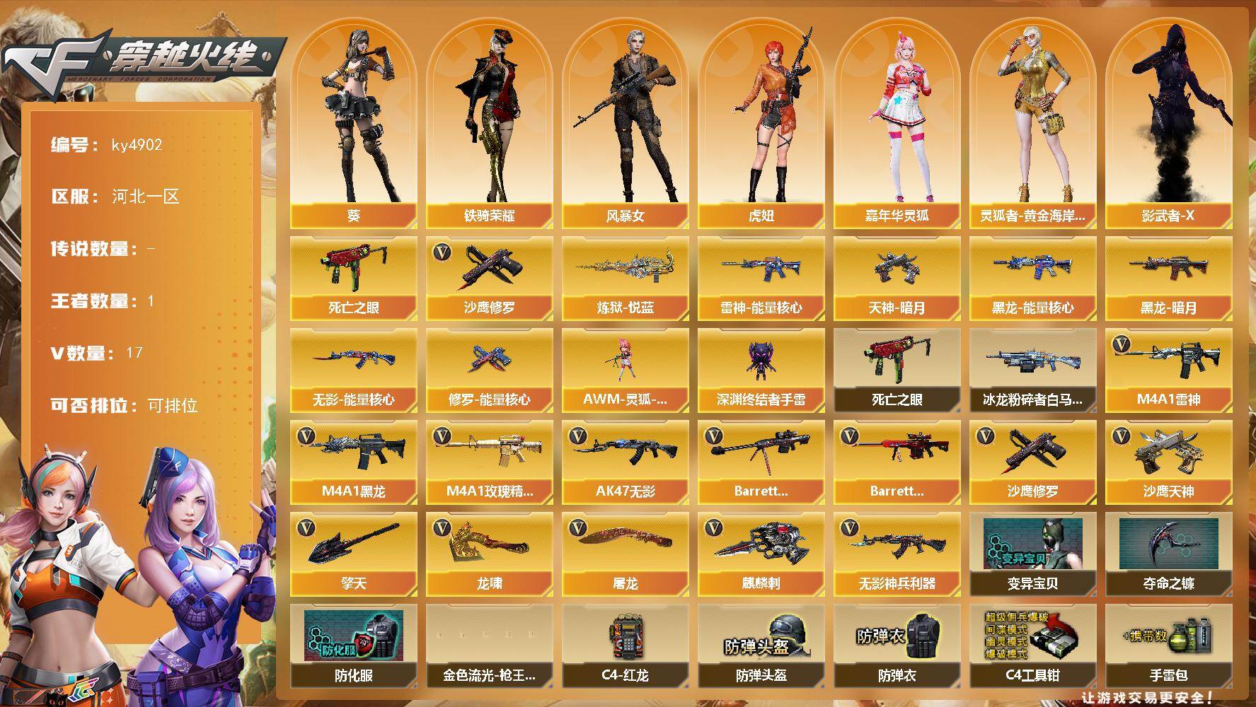 河北一区-17V-1王者-0炫金【热门武器】:死亡之眼,沙鹰-修罗【王者炫