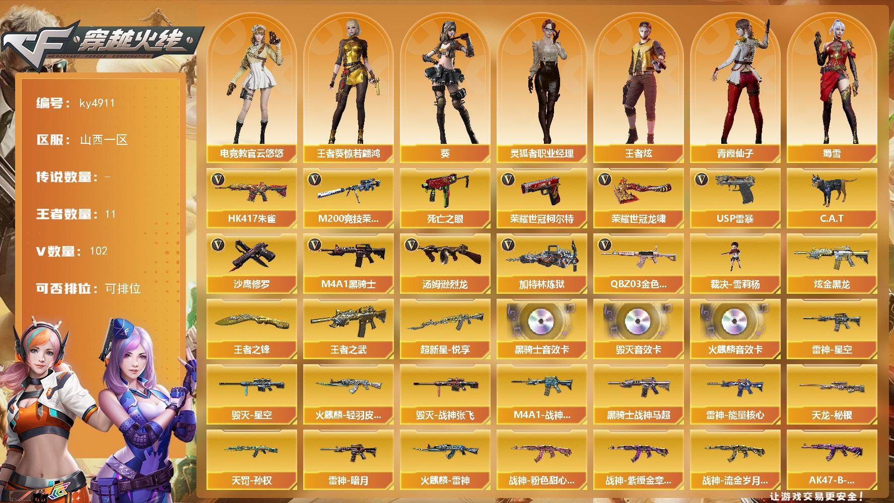 山西一区-102V-11王者-1炫金【热门武器】:QBZ03-金色蔷薇,HK