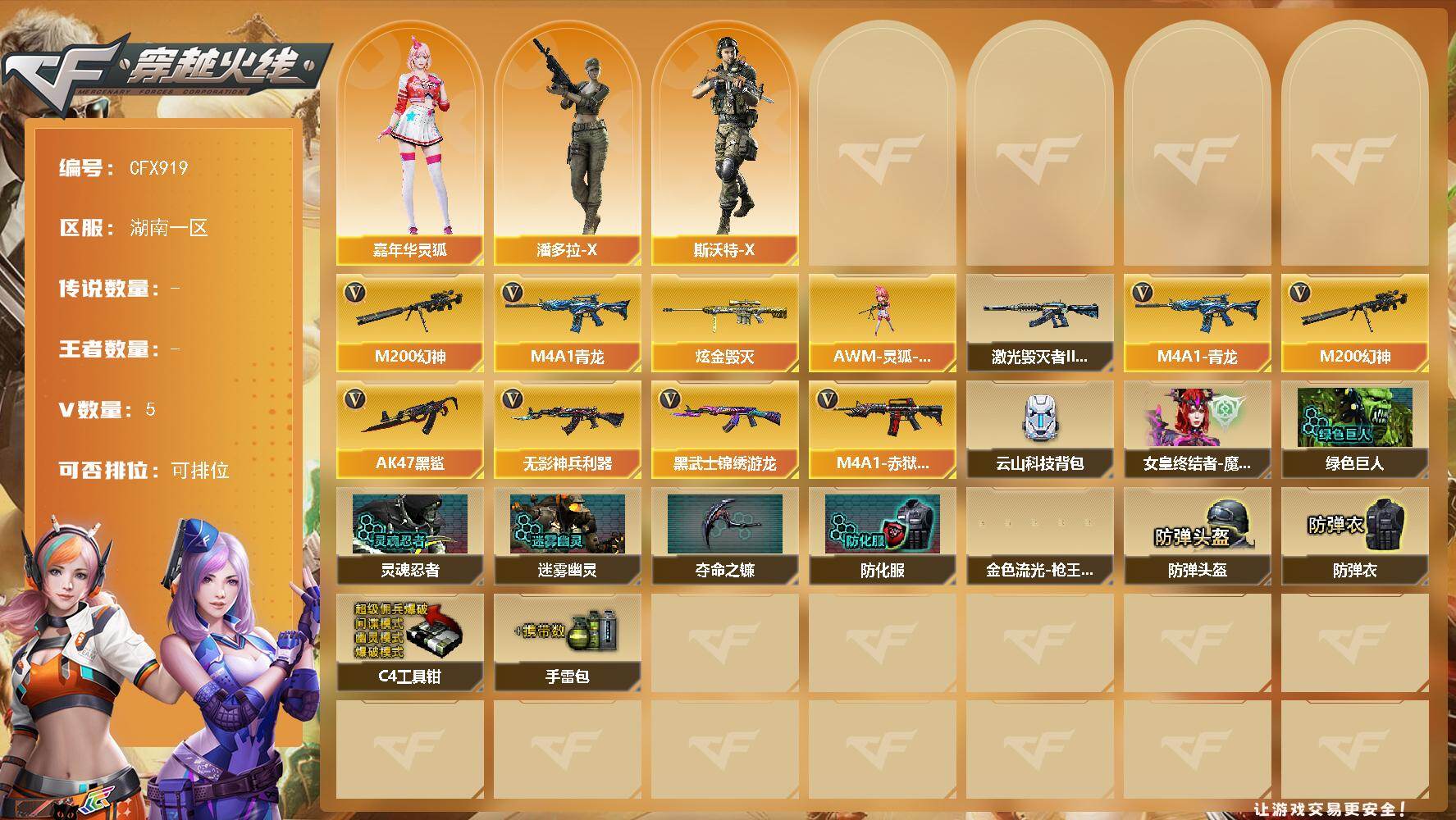湖南二区-63V-5王者-5炫金【热门武器】:金色蔷薇-古蛇迷踪,修罗-古蛇