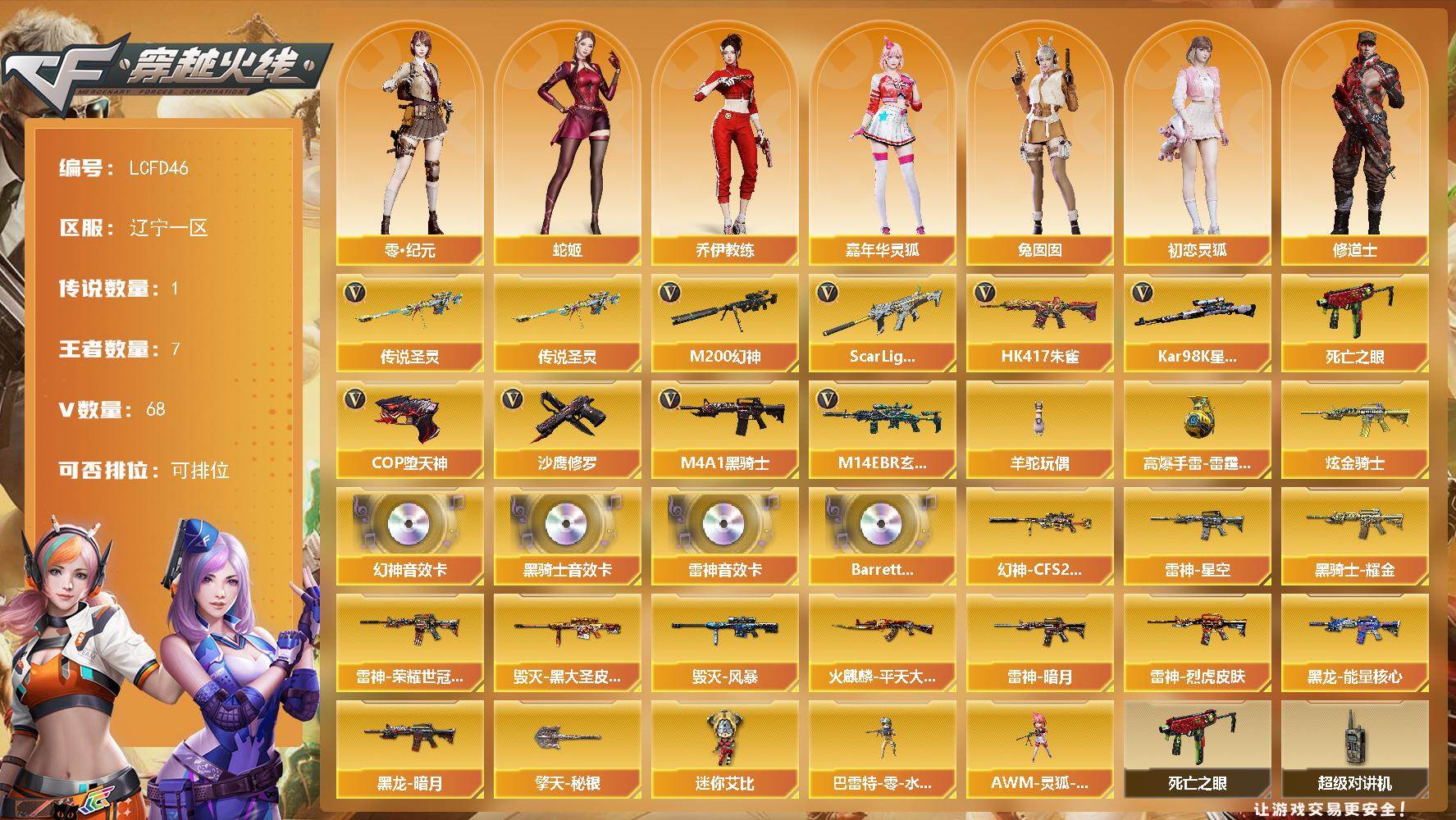 江西一区-84V-11王者-2炫金【传说角色】:传说星骇【热门武器】:QB